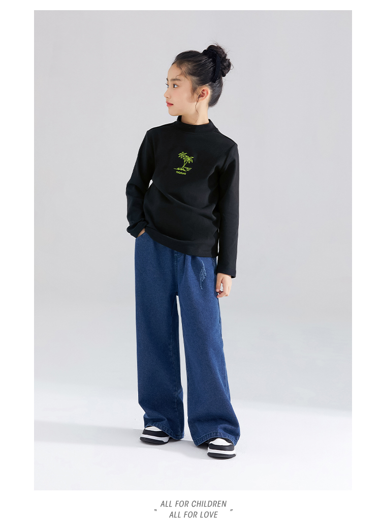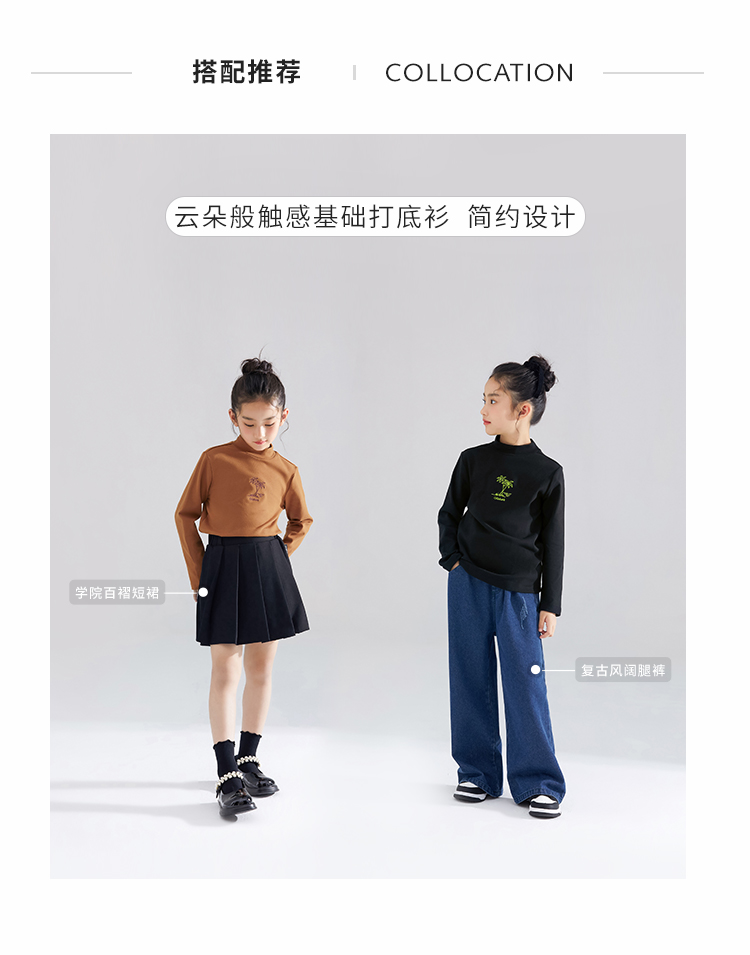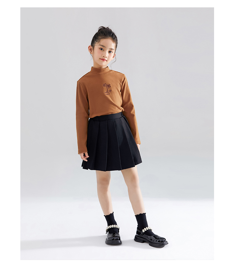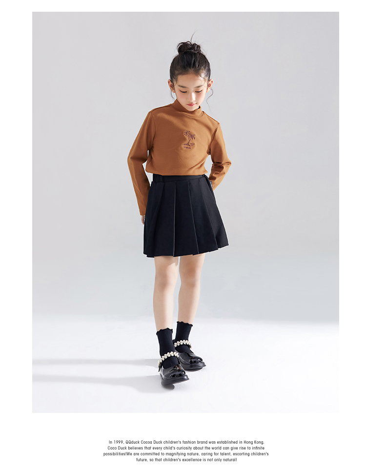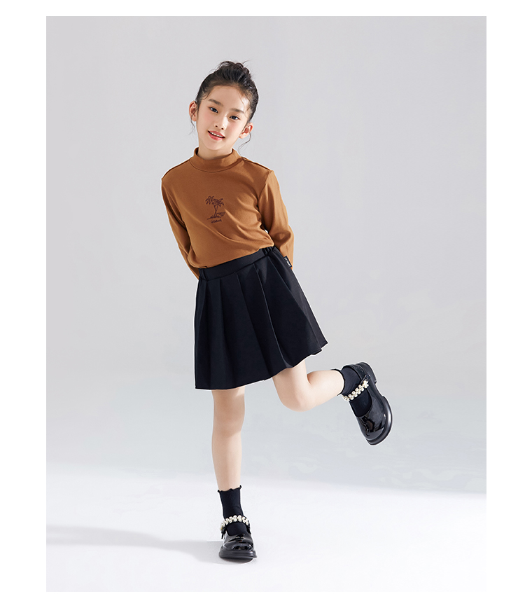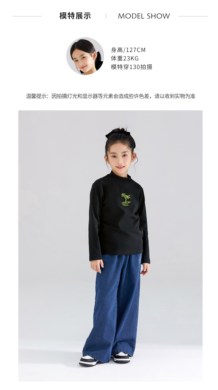 【清仓捡漏】【120-165】【QQduck可可鸭】女童半高领打底衫儿童长袖T恤棉93.6% 氨纶6.4%