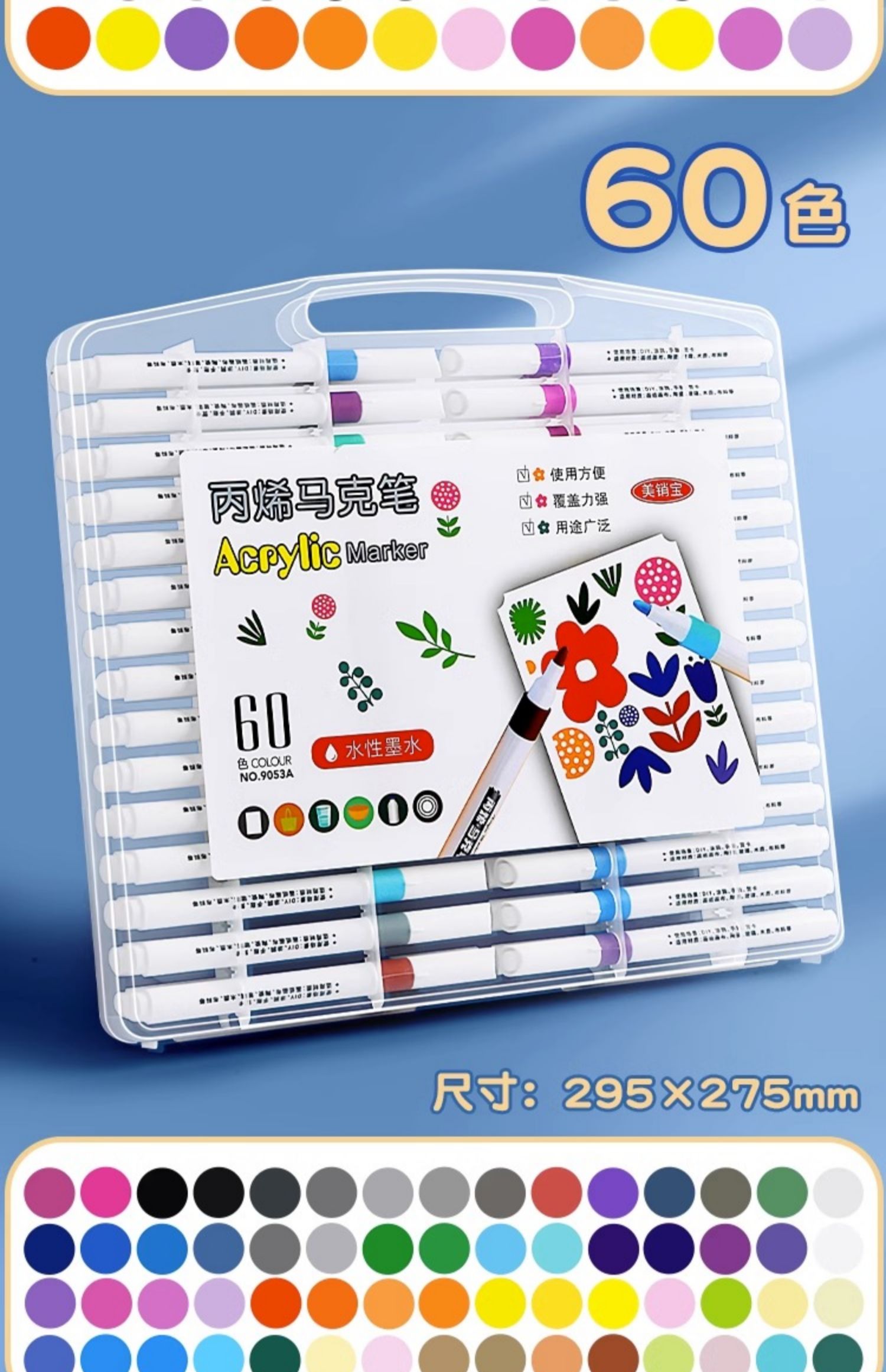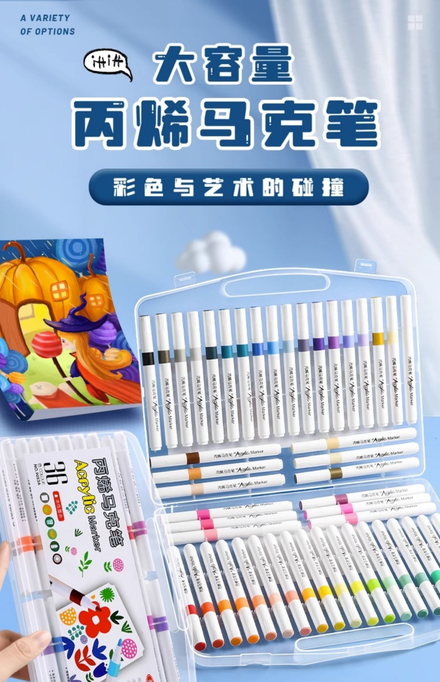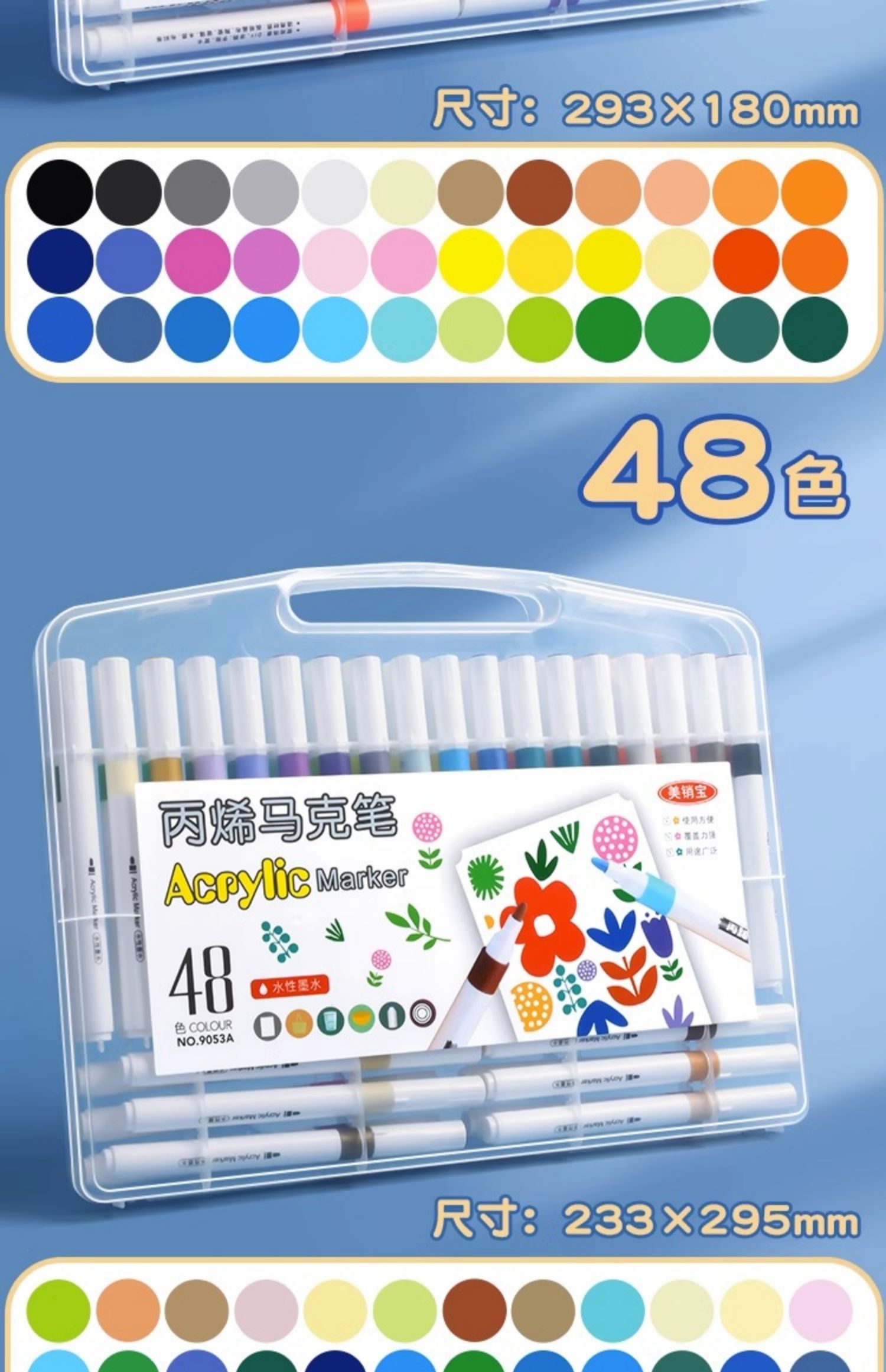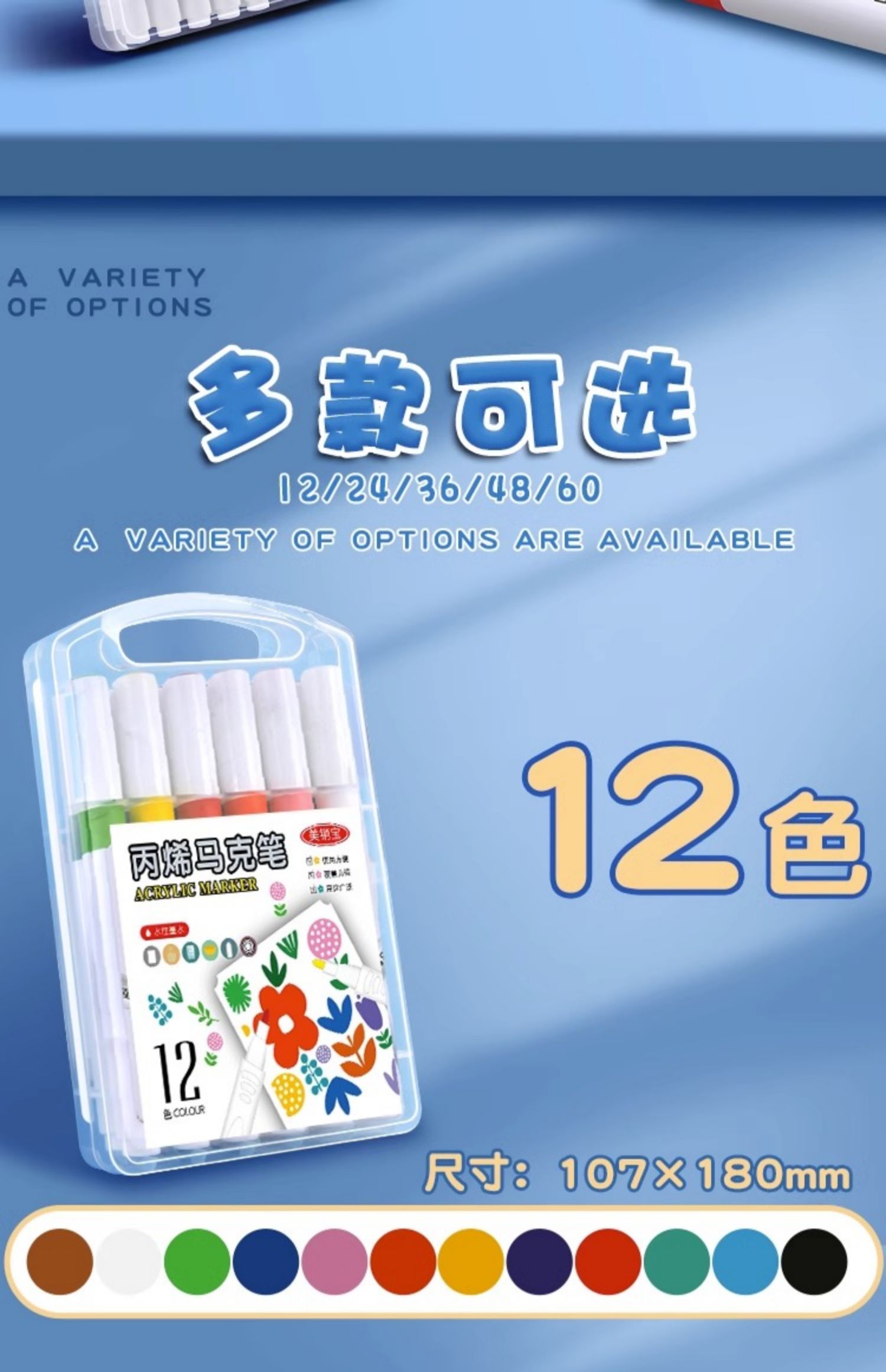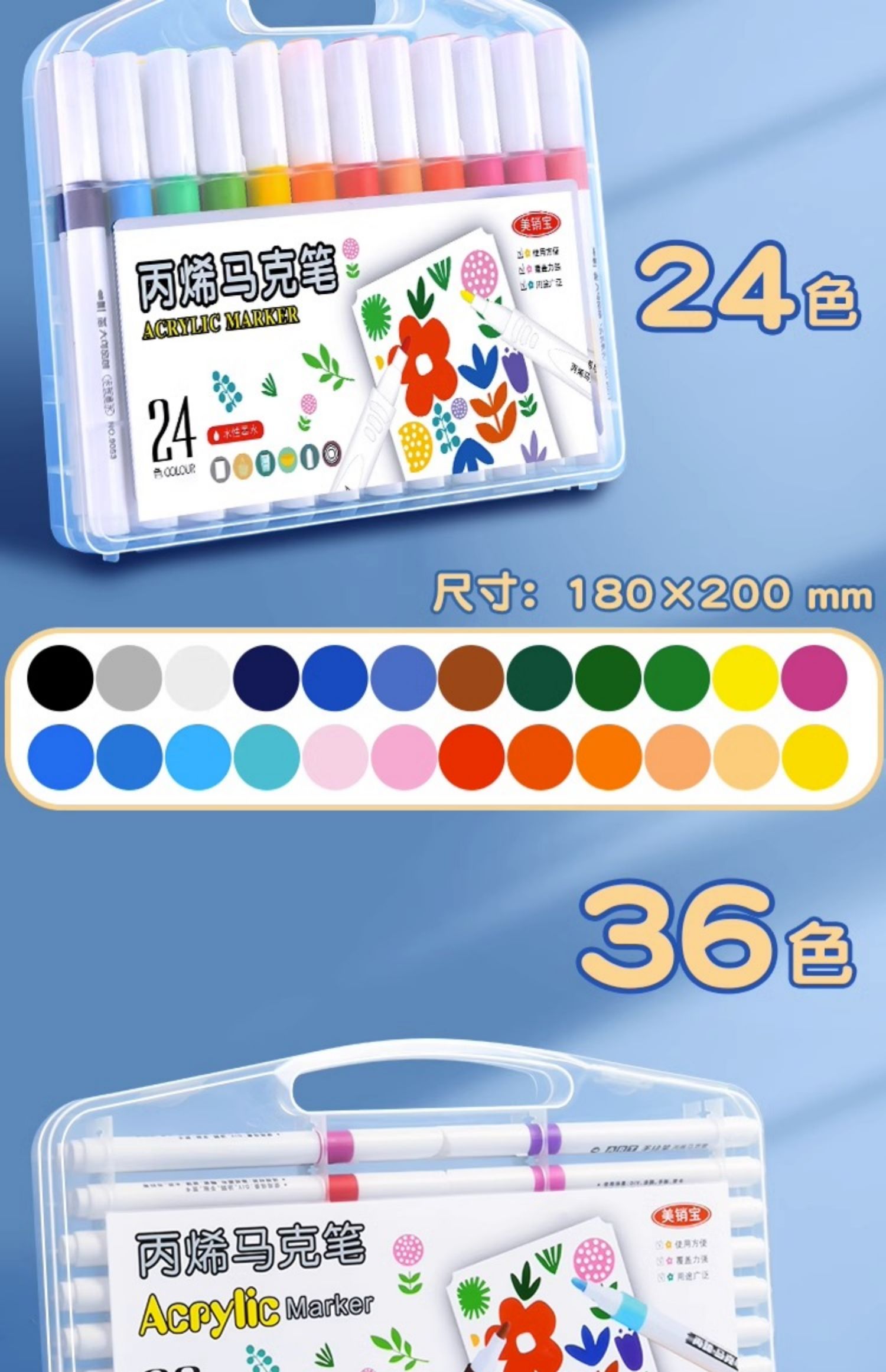 丙烯马克笔儿童水彩笔小学生专用彩笔美术画笔可水洗无毒丙烯笔可洗水性防水48色36色24色12色笔芯比心马克笔