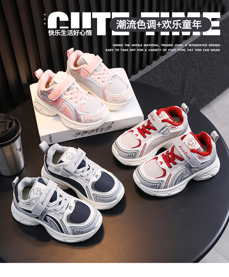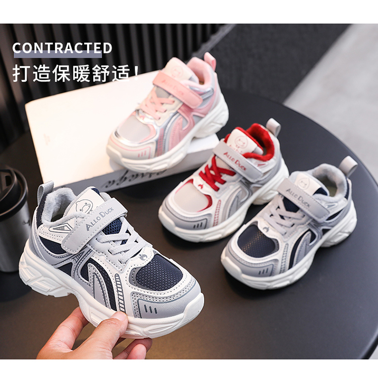 小黄鸭新款运动鞋儿童冬季皮面防水加绒保暖男女童小中童跑步休闲鞋21-38