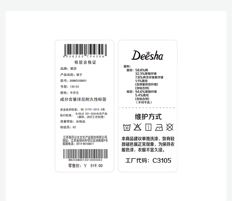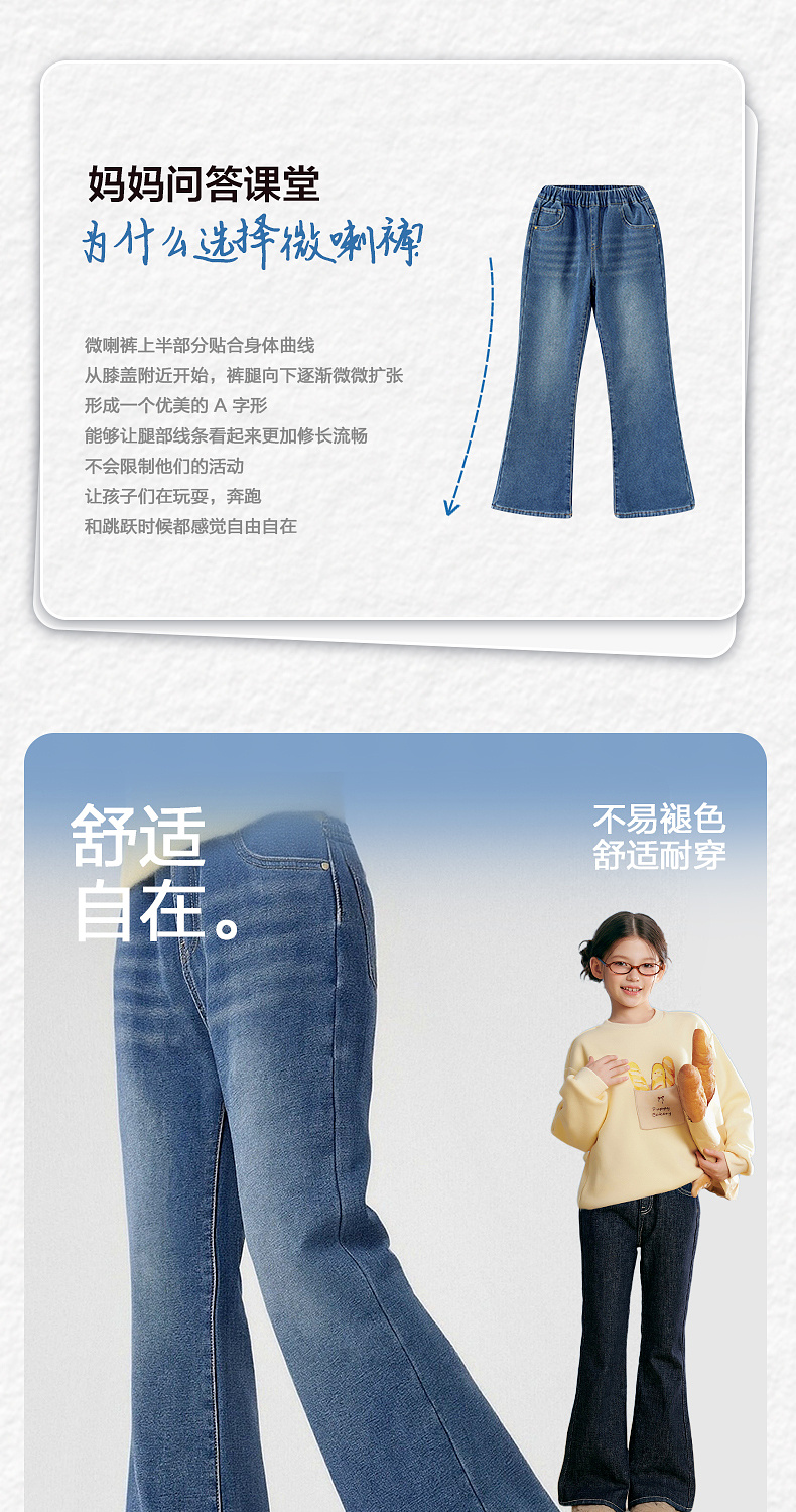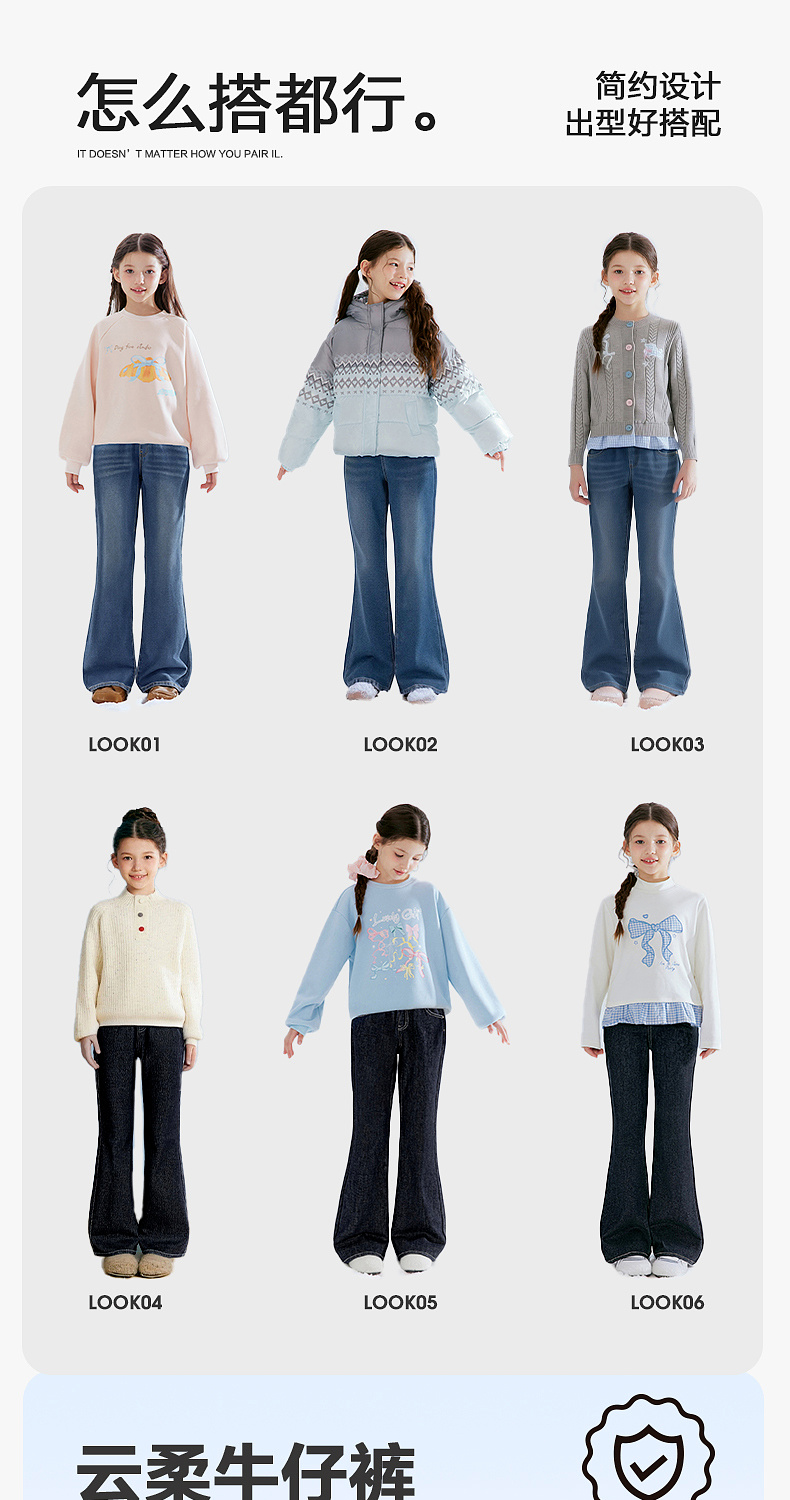 笛莎Deesha 官方童装女童裤子2025年冬季新款大童女孩儿童洋气牛仔裤喇叭裤长裤