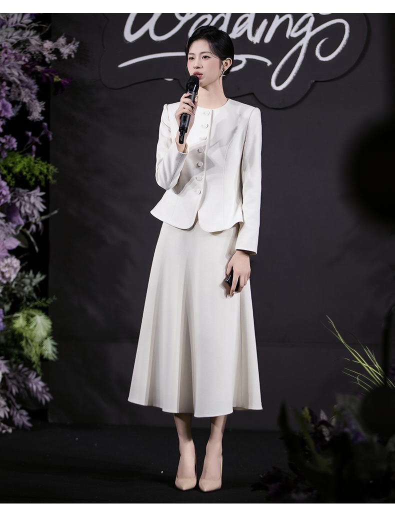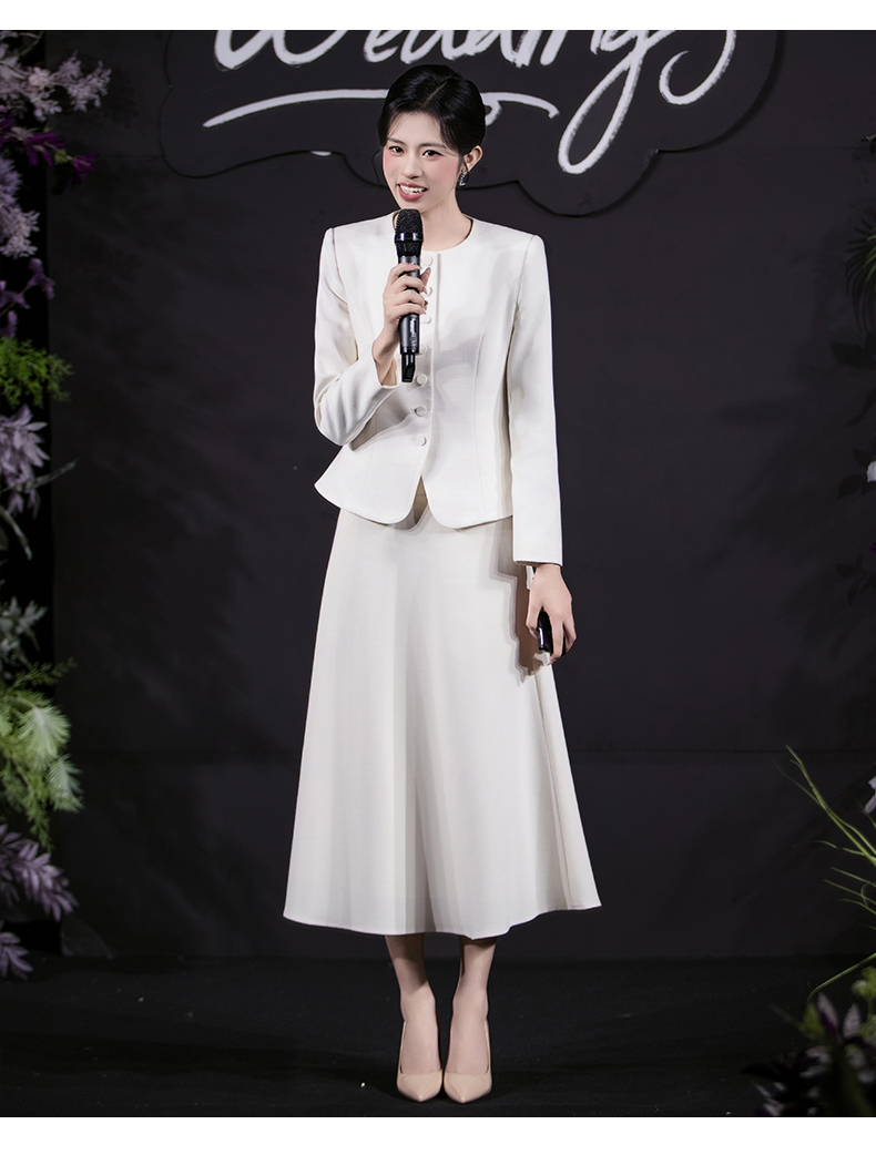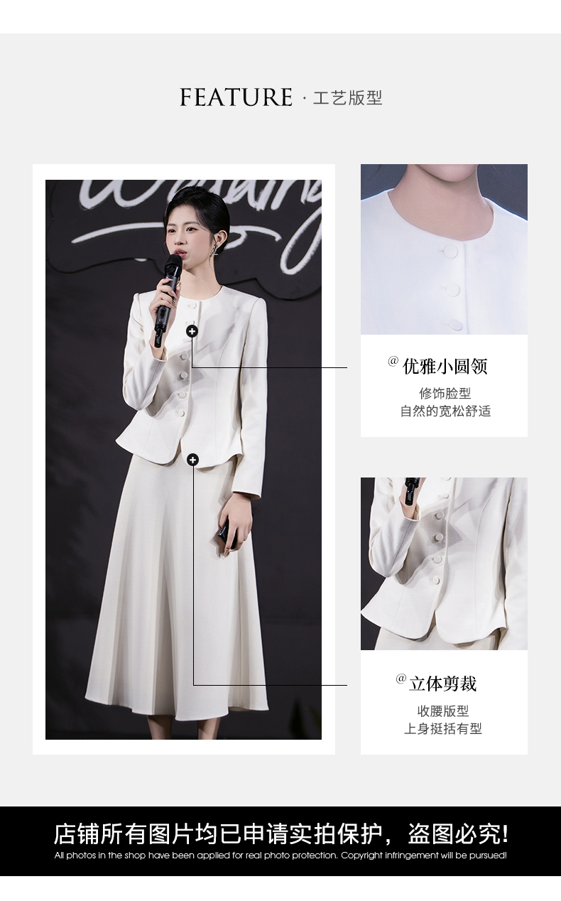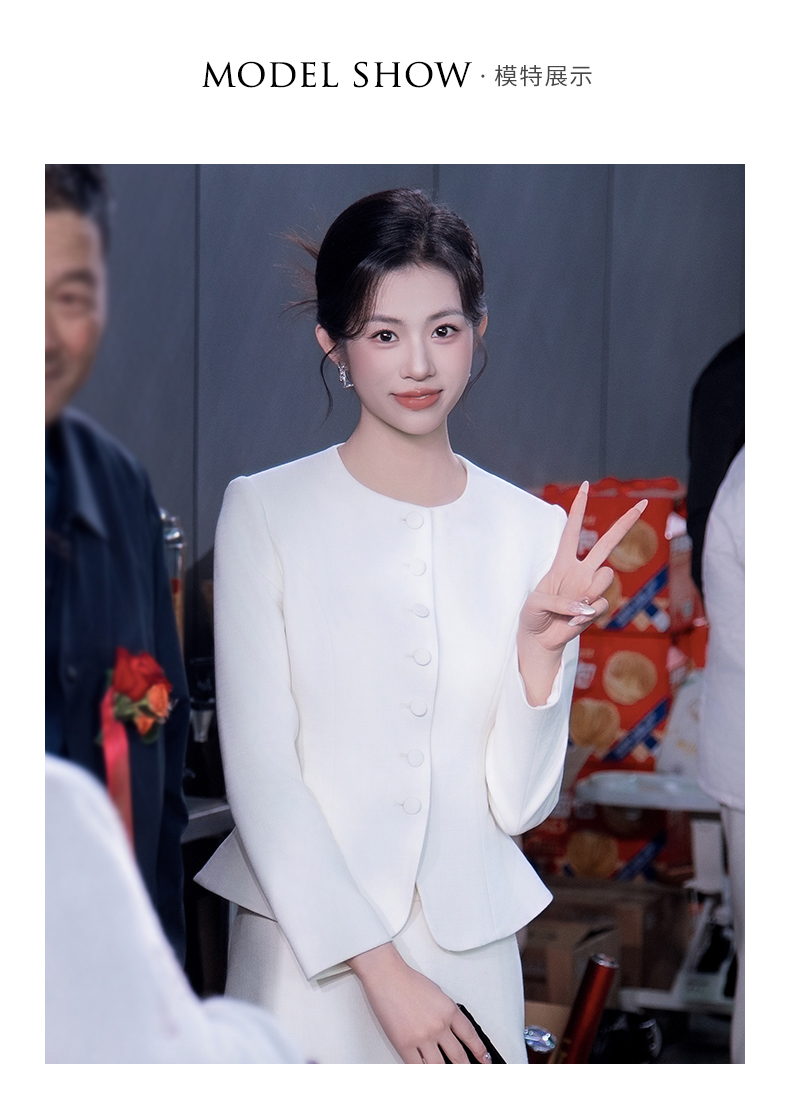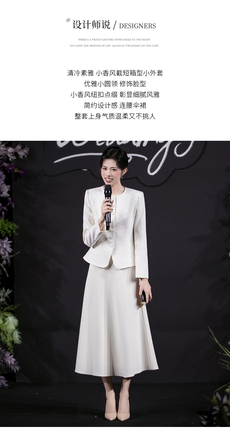 法小曼*子珍专款/女2025年新款时尚套装年轻洋气减龄正装米白色职业装西装伞裙