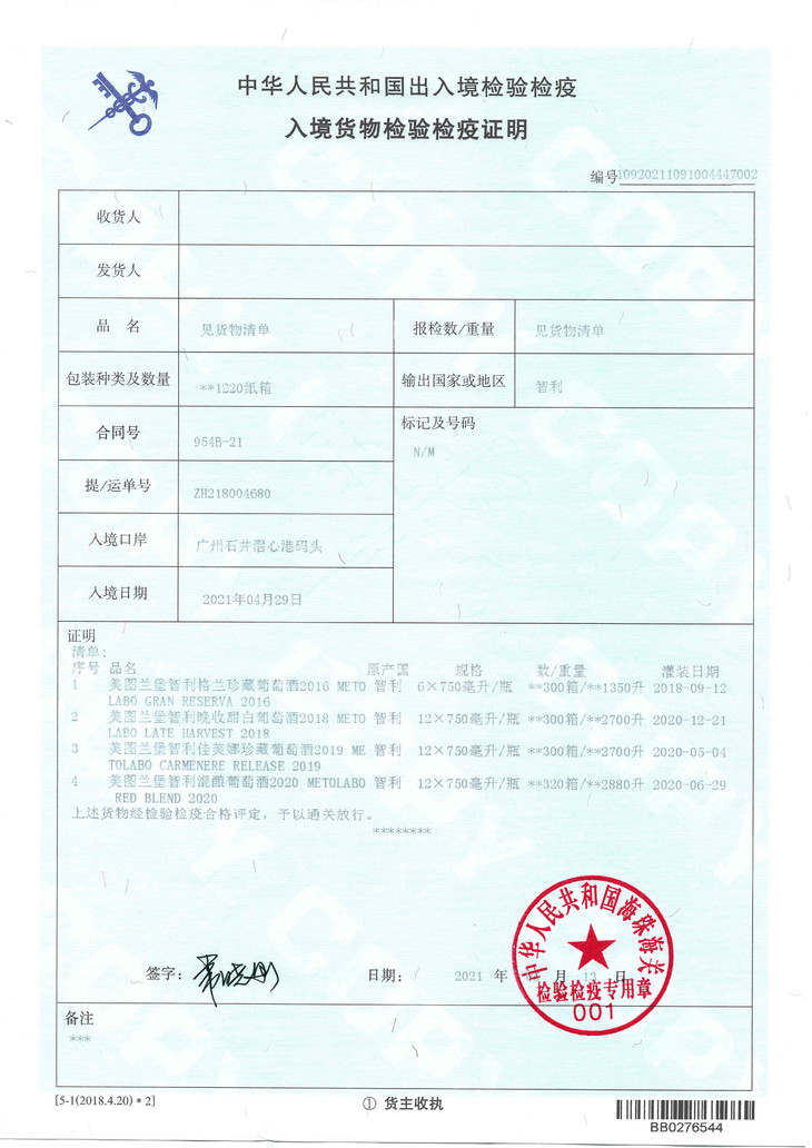 入境货物检验检疫证明