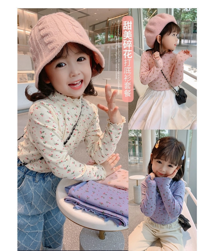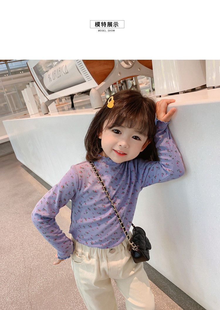 【福利款】【碎花打底衫,洋气上衣爆款!!】女童春装2024新款儿童长袖T恤,春秋半高领碎花打底衫宝宝洋气上衣,洋溢春光暖意,宝贝时尚穿搭!