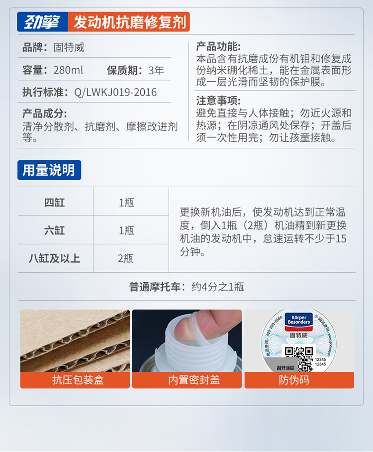 固特威发动机抗磨修复剂强力降噪治烧机油保护剂机油精机油添加剂