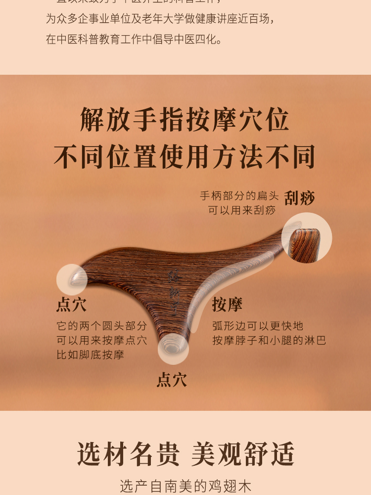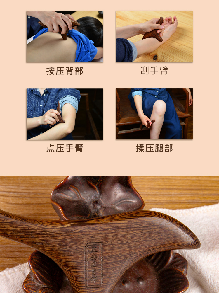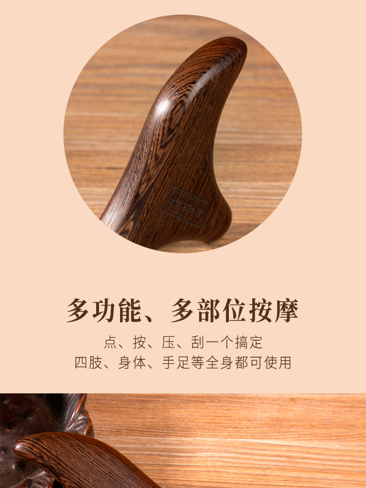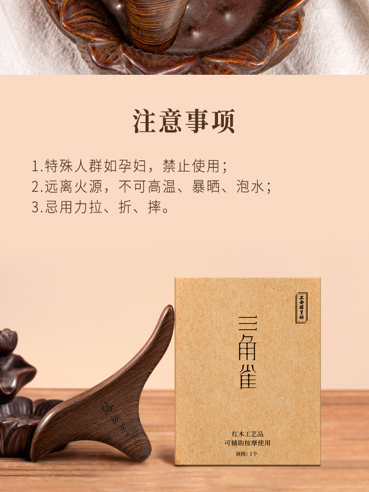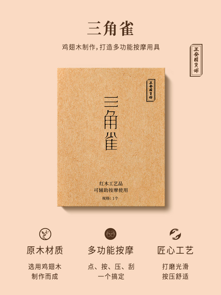 正安国货铺 三角雀穴位按摩器 鸡翅木檀木三叉经络刷按摩点穴棒 包邮