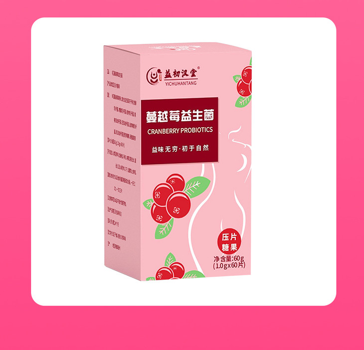 【买二送一,买三送二】益初汉堂蔓越莓益生箘 抵抗外界伤害减少反复 不痒无异味清爽洁净 呵护女性私处健康 压片糖果60g(1.0g*60片)/盒
