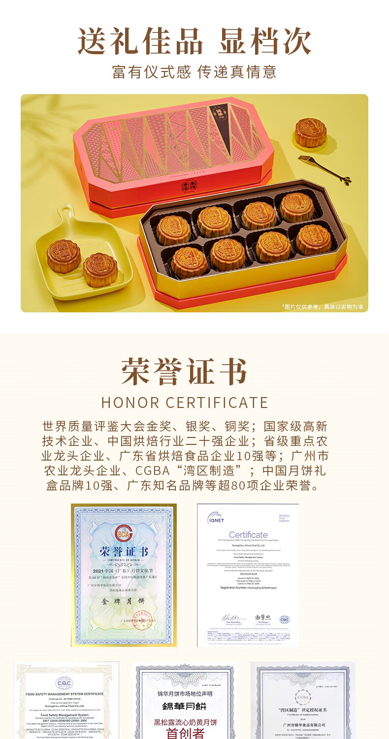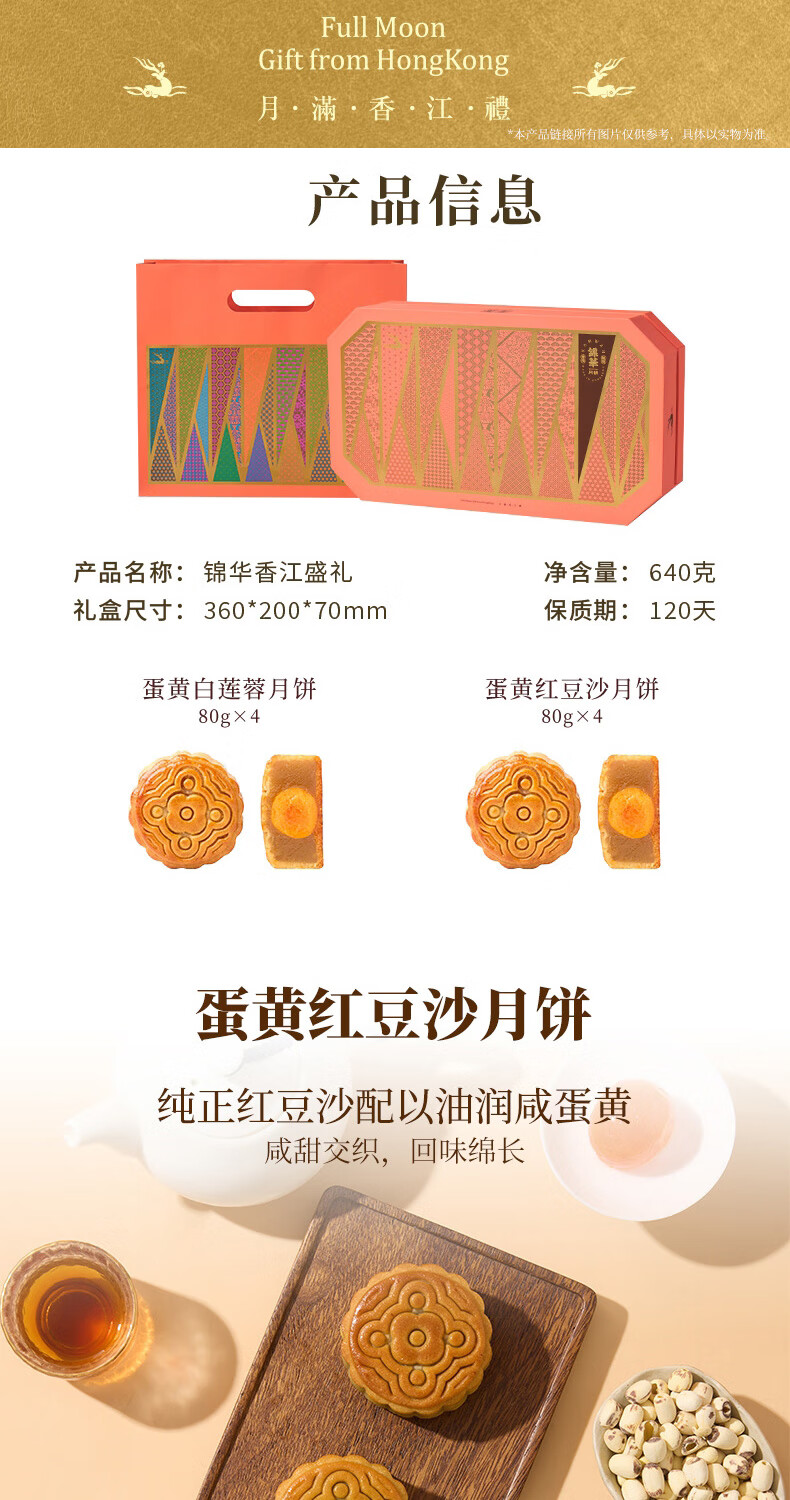 【礼遇中秋】香港锦华香江盛礼640g/070115 蛋黄白莲蓉月饼蛋黄红豆沙月饼