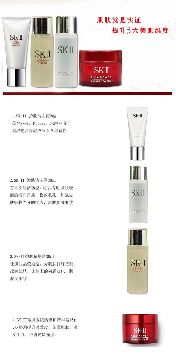 专柜 SK-II/SK-II旅行四件套(护肤洁面霜20g+嫩肤清莹露30ml+护肤精华露30ml+霜15g)