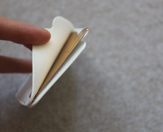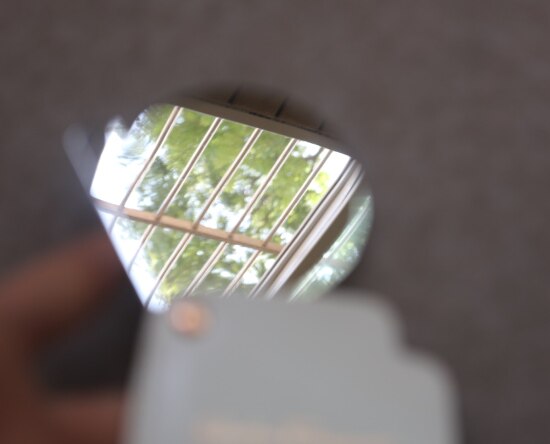 卡片式的单面镜 背面是马蹄形的印标 白色PU卡套 转出 钉钉固定 不可拆