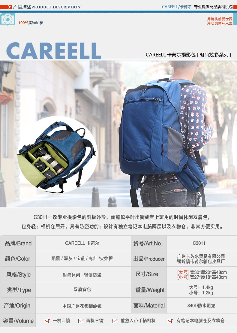 careell防盗专业单反包双肩摄影包大容量 升级款