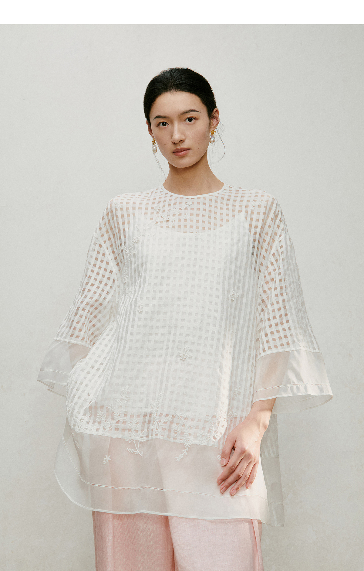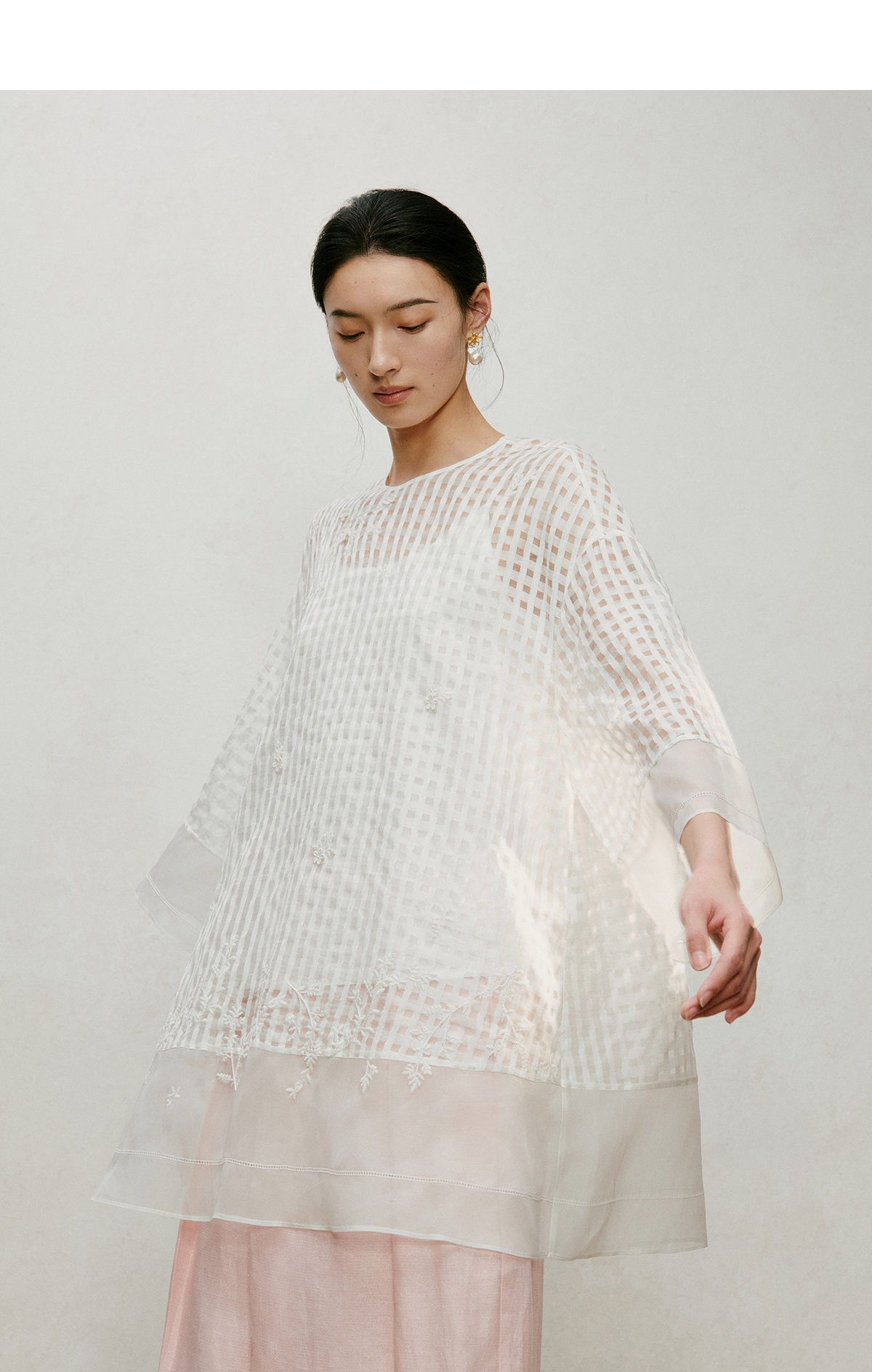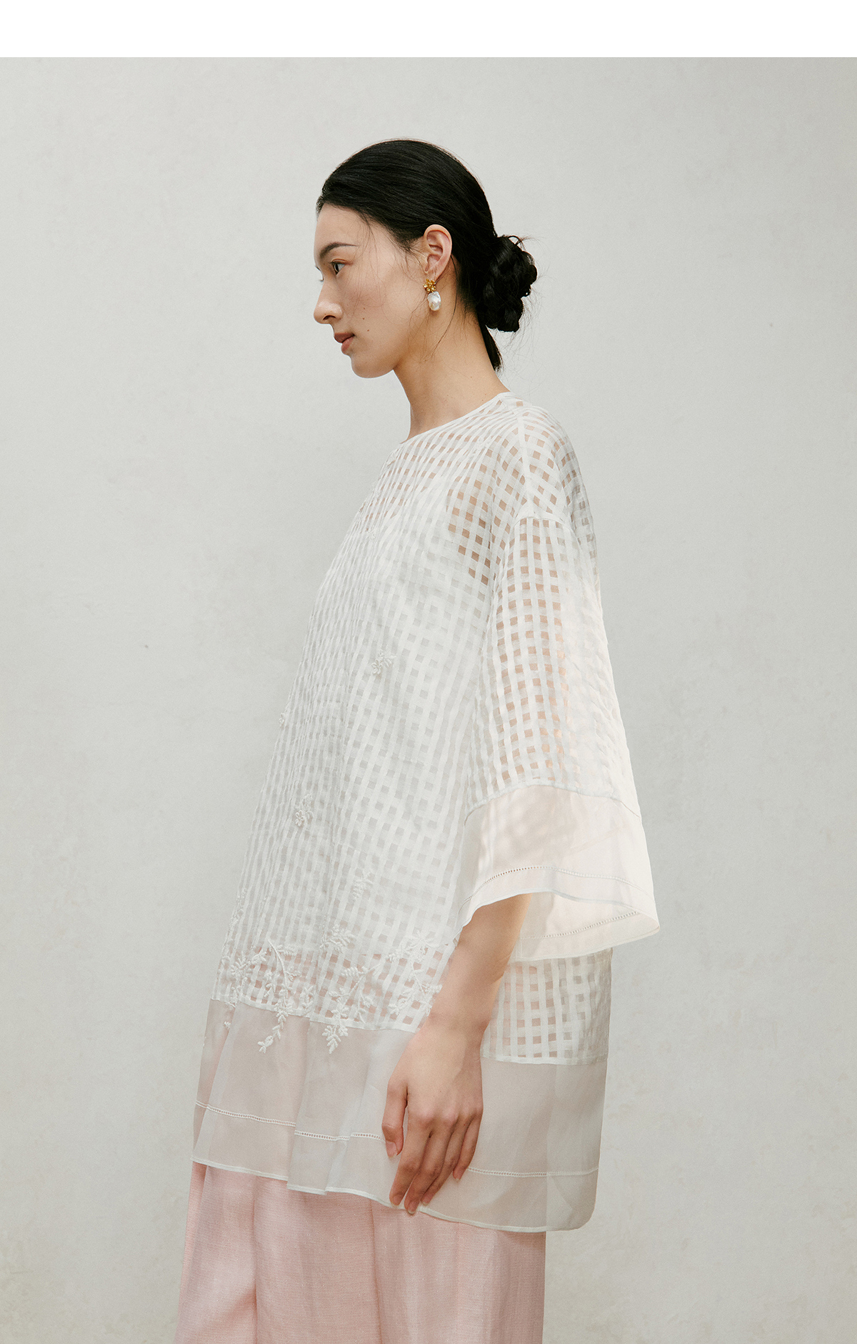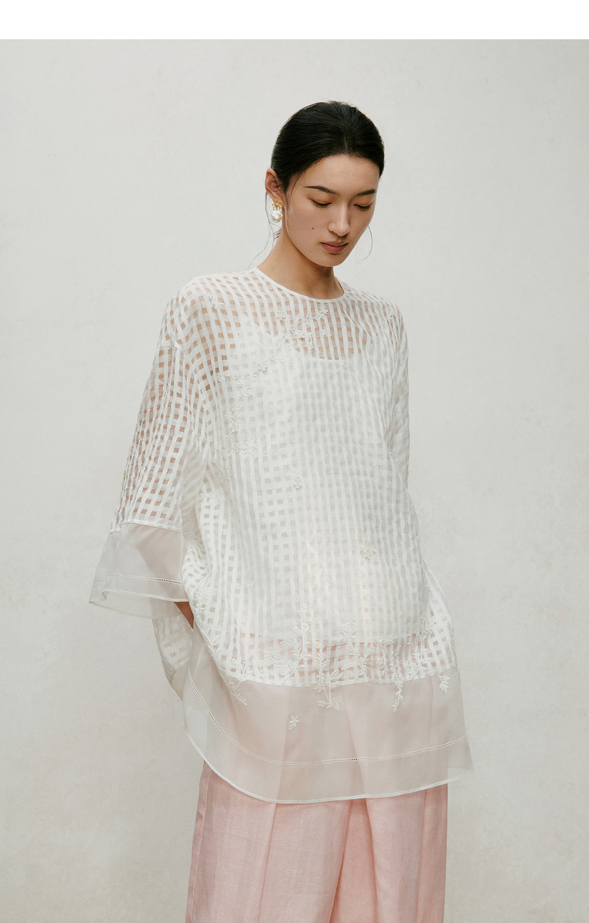 【林栖设计小店】手工钉花|时装周同款格纹绣花2026夏新款国风衬衣两件套1962191