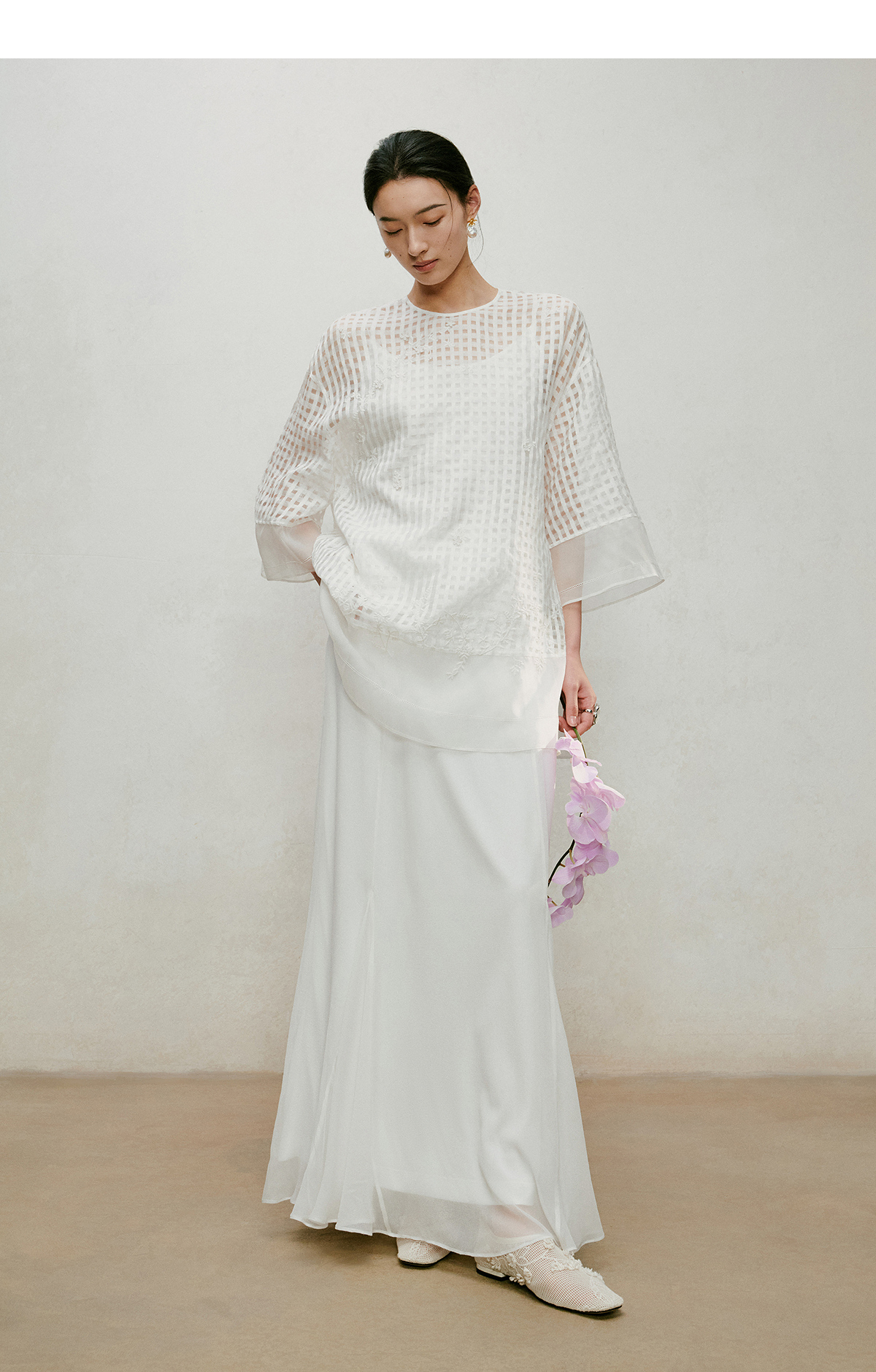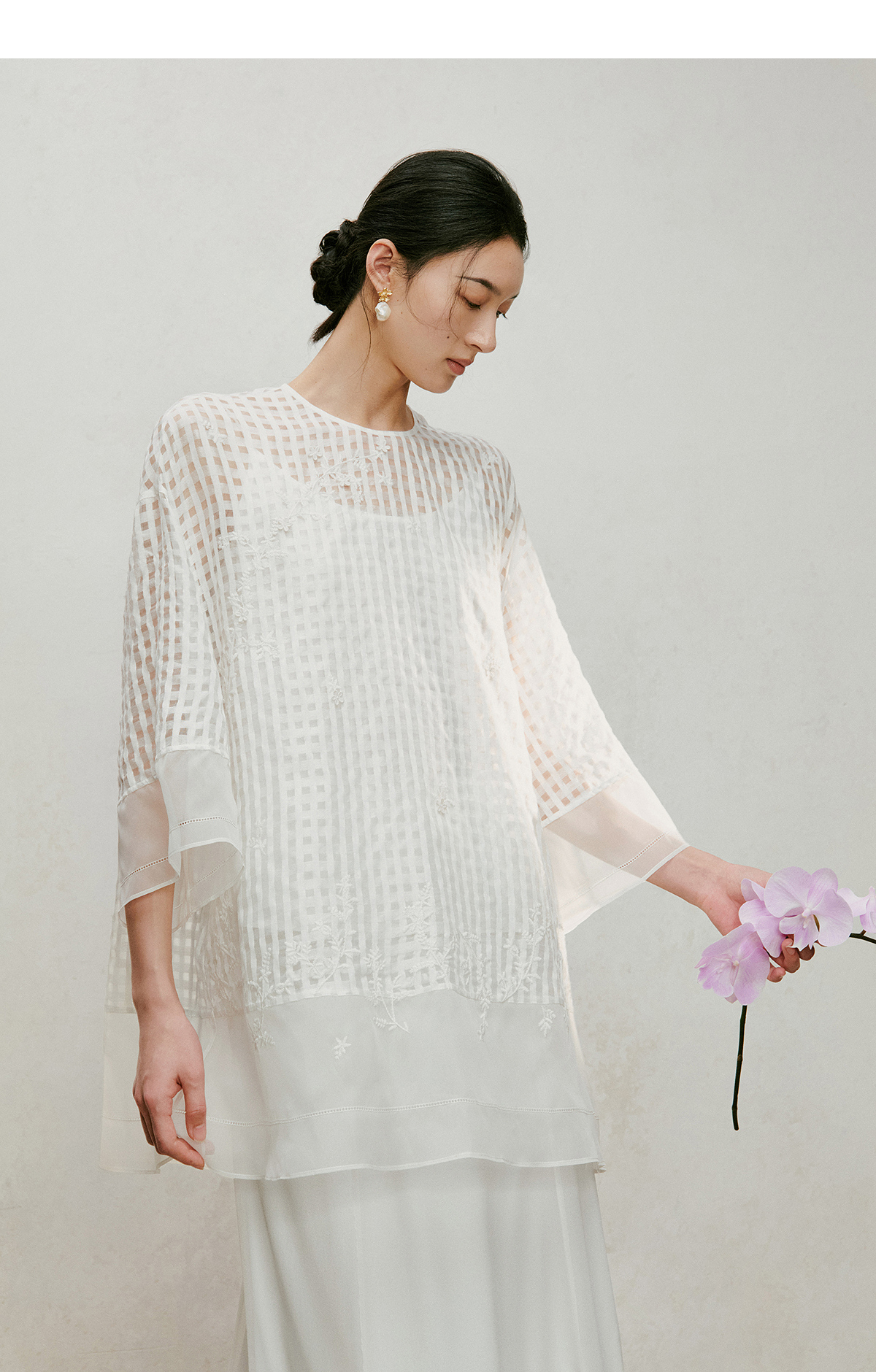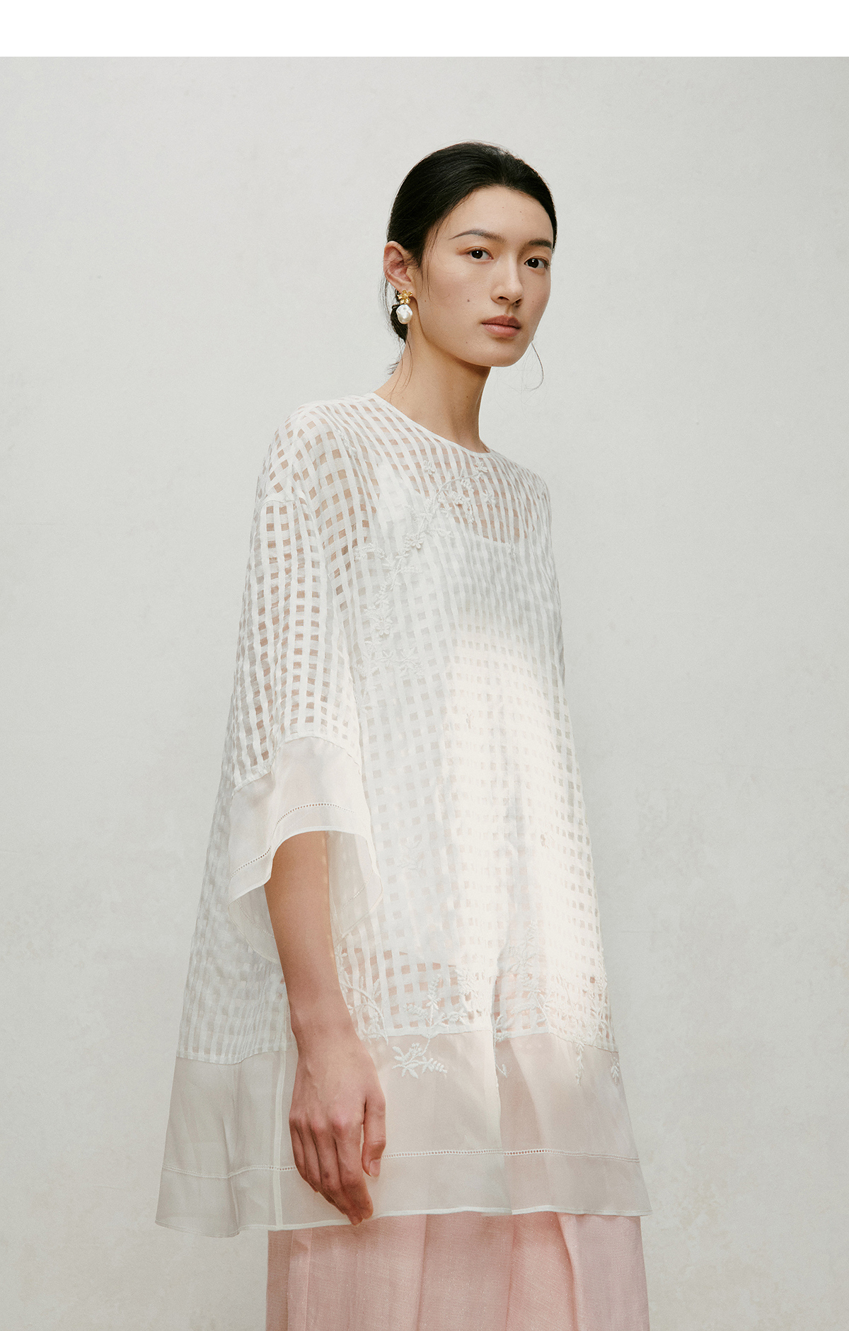 【林栖设计小店】手工钉花|时装周同款格纹绣花2026夏新款国风衬衣两件套1962191