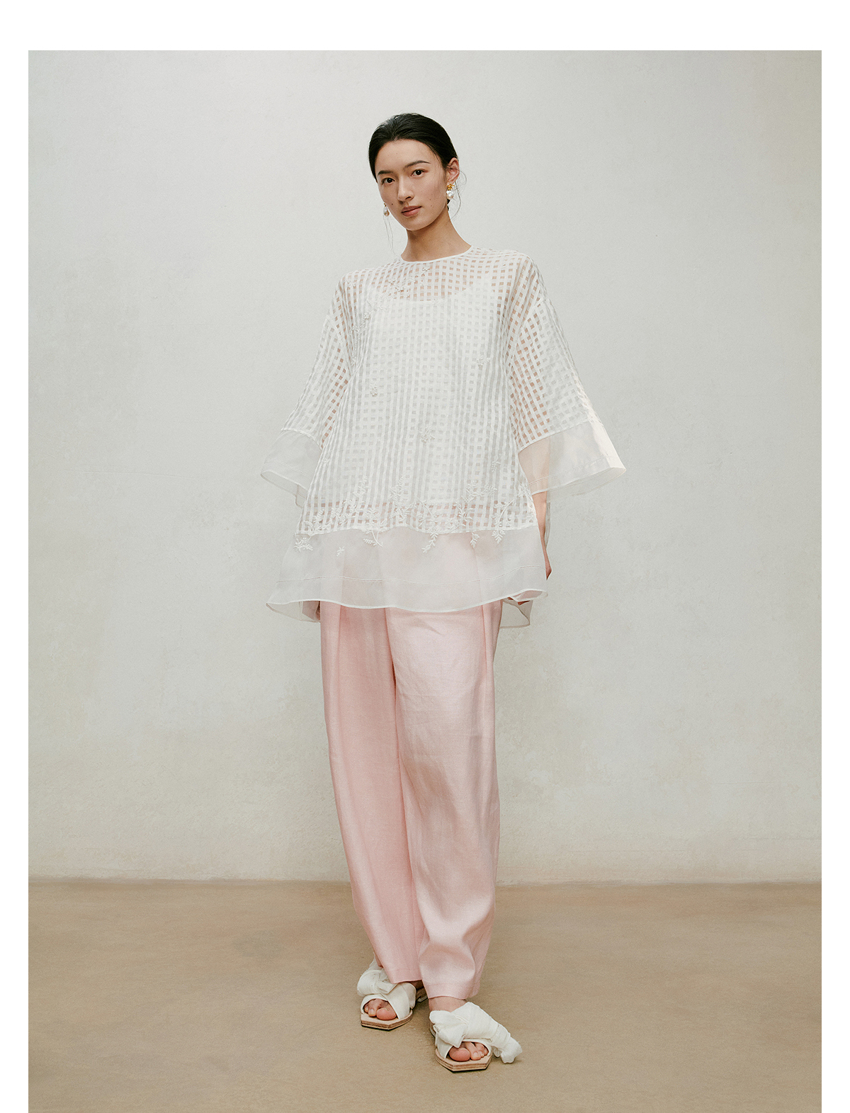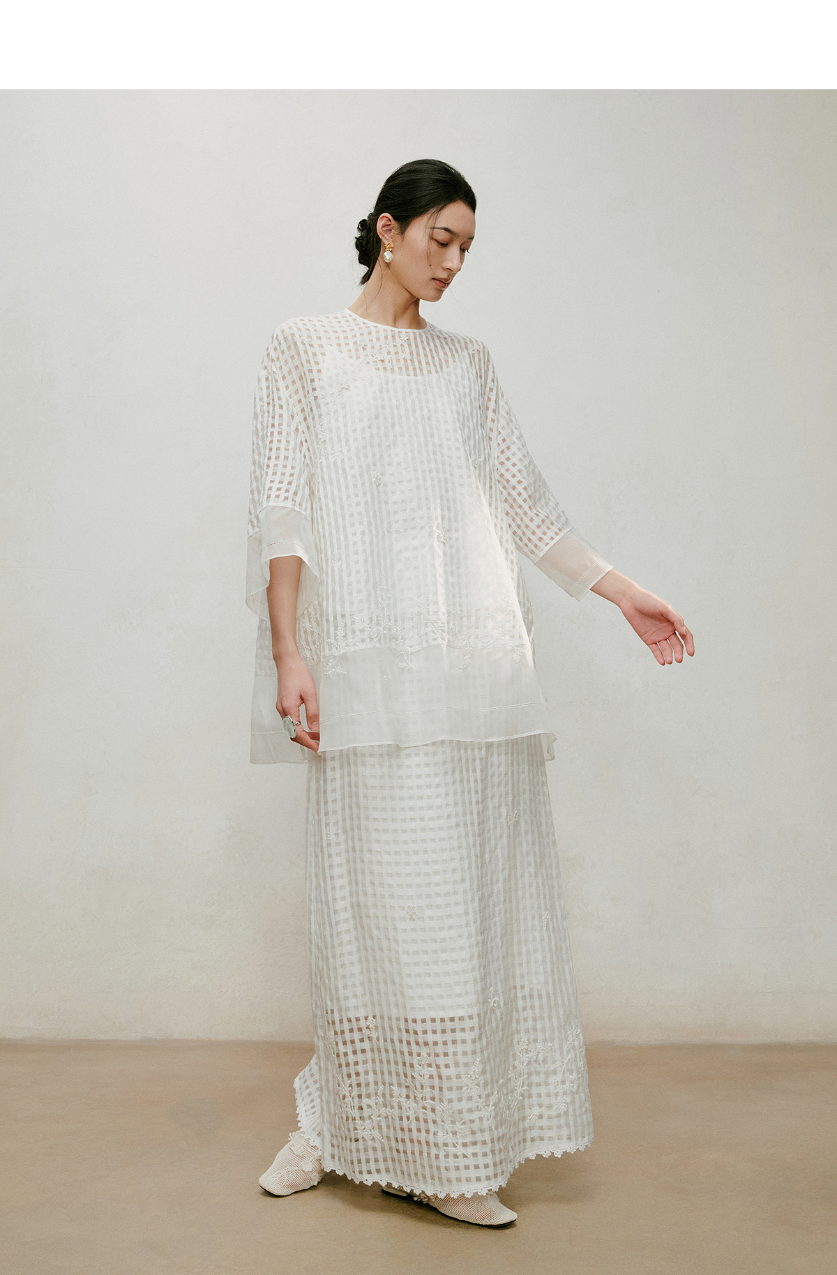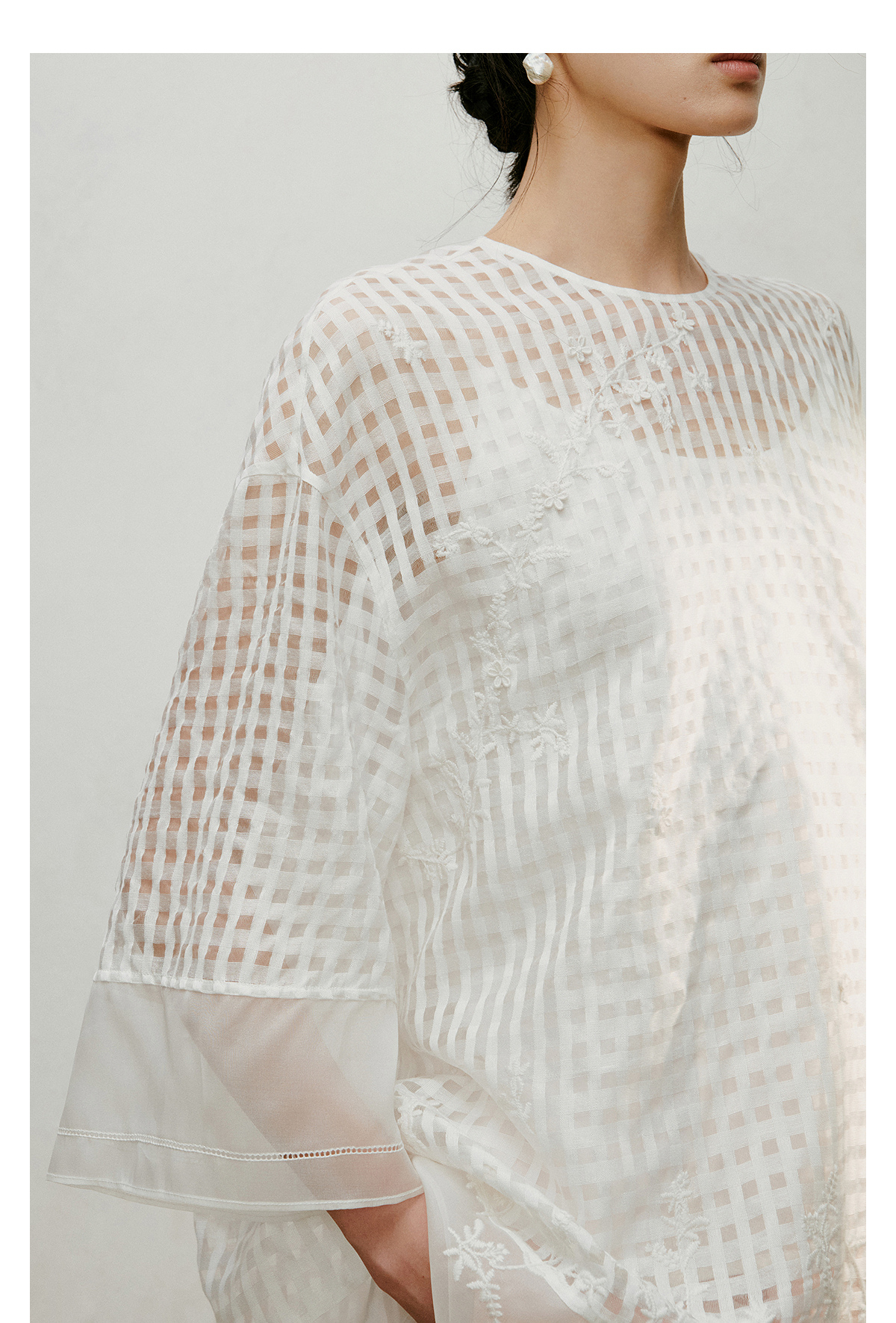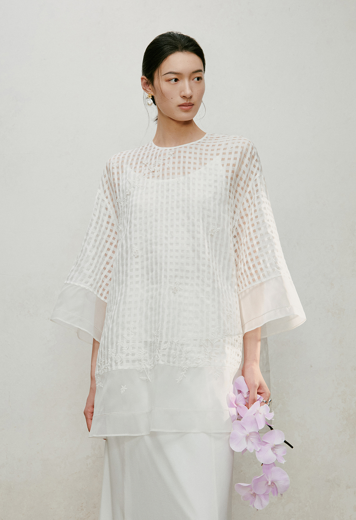 【林栖设计小店】手工钉花|时装周同款格纹绣花2026夏新款国风衬衣两件套1962191