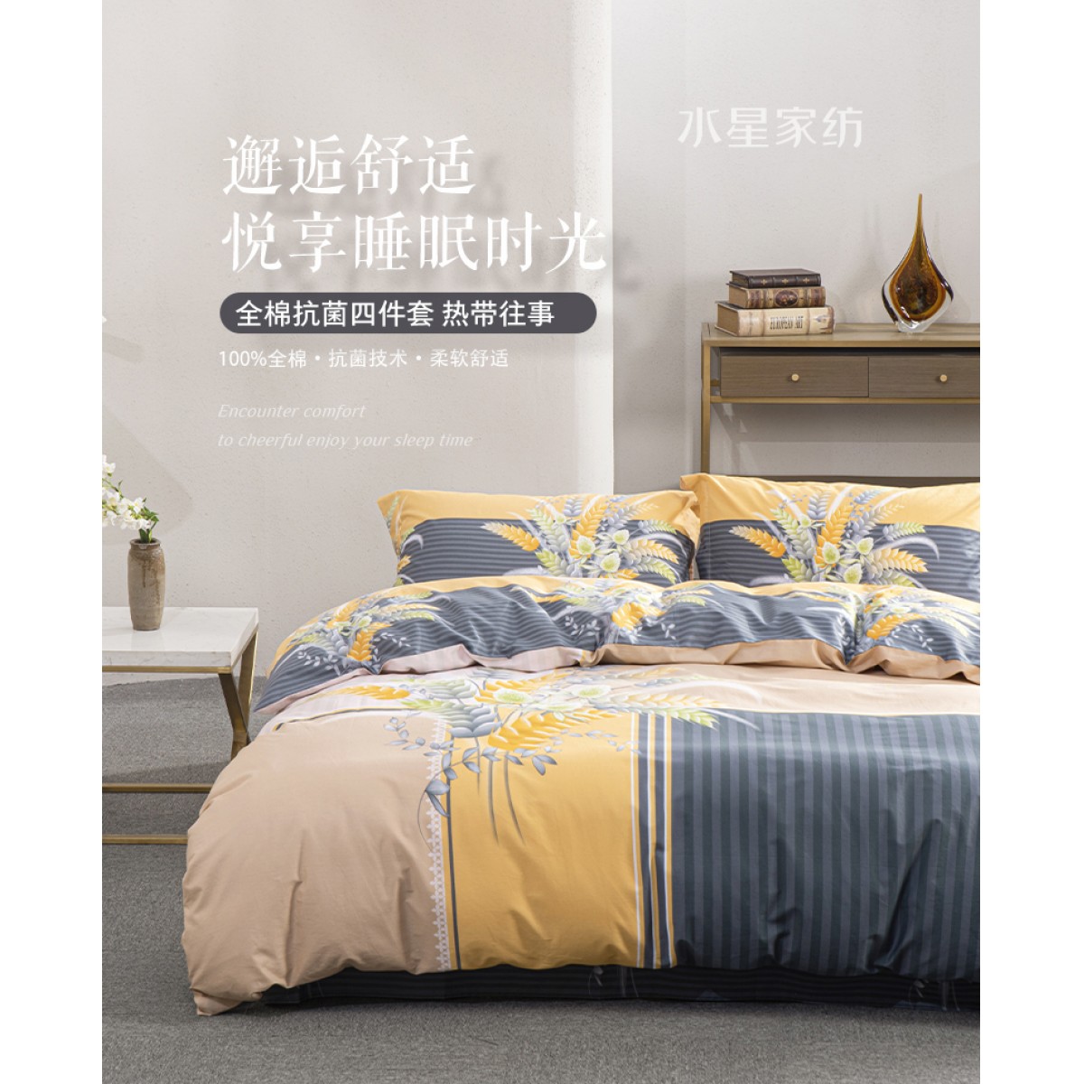 水星家纺全棉抗菌四件套DH热带往事 1.5米床124802