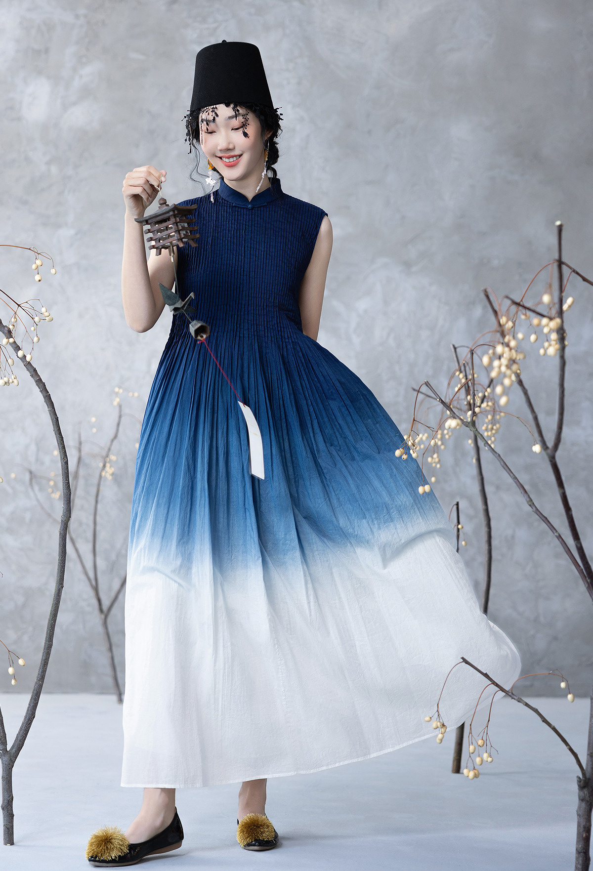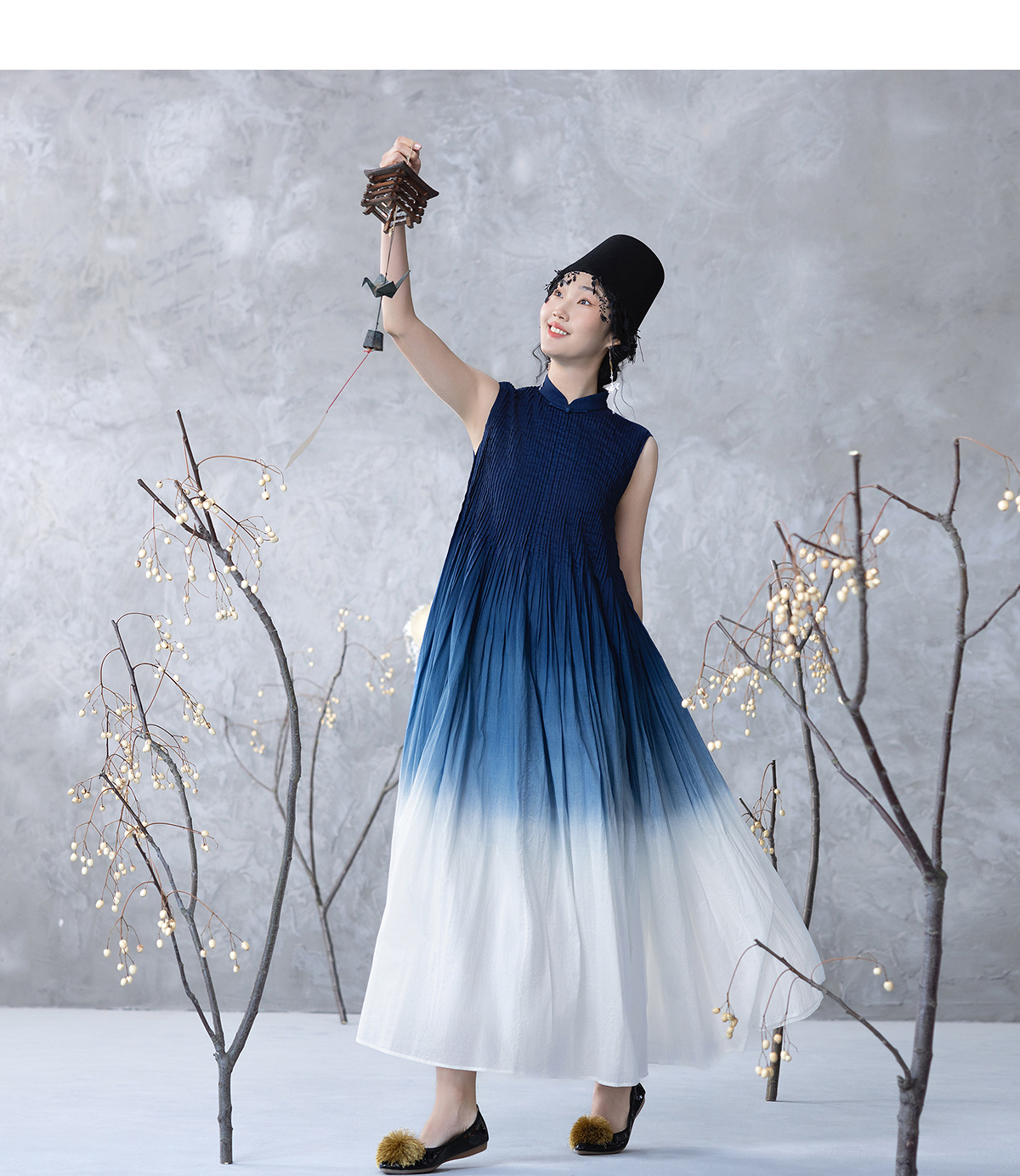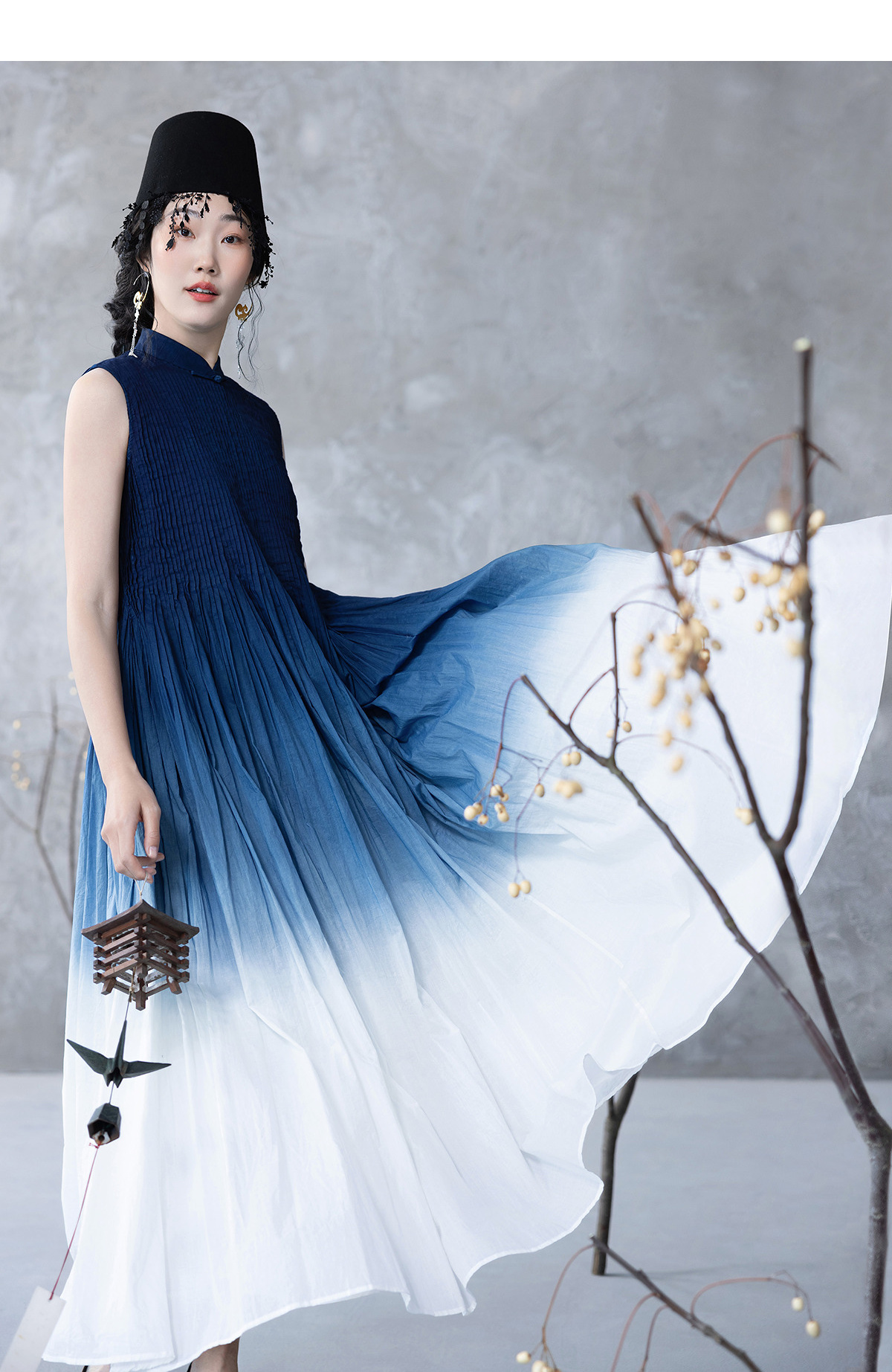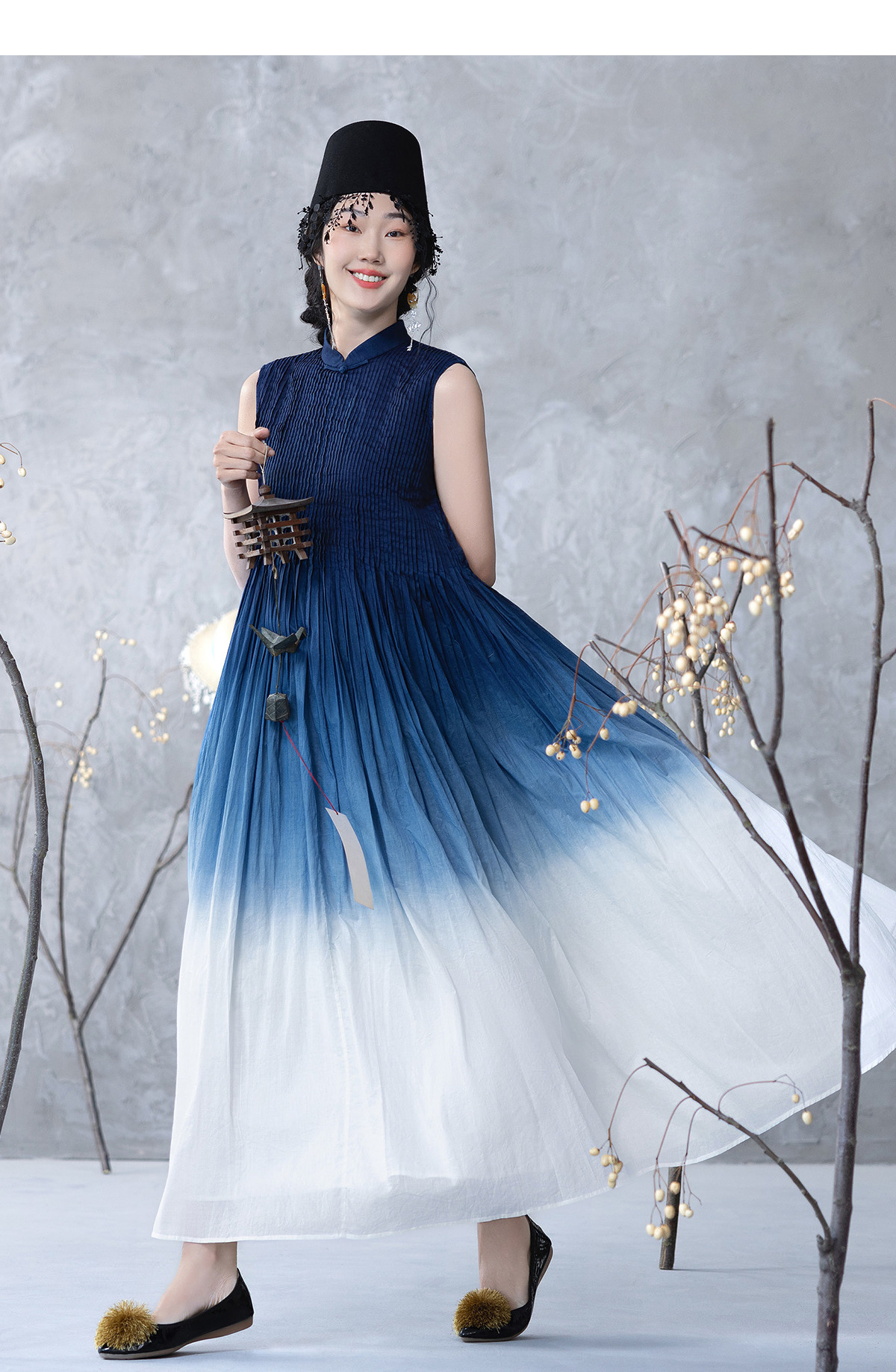 【林栖设计小店】婴儿棉连衣裙植物染立体牙签褶新中式2025春夏新品长裙女1952098