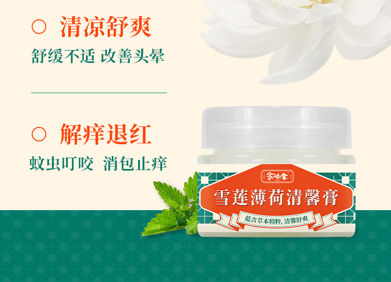 余伯年雪莲薄荷清馨膏 2盒(15g*2) 百年国货品牌 夏日刚需 持续凉感 药房同款 五种草本精粹提取制作