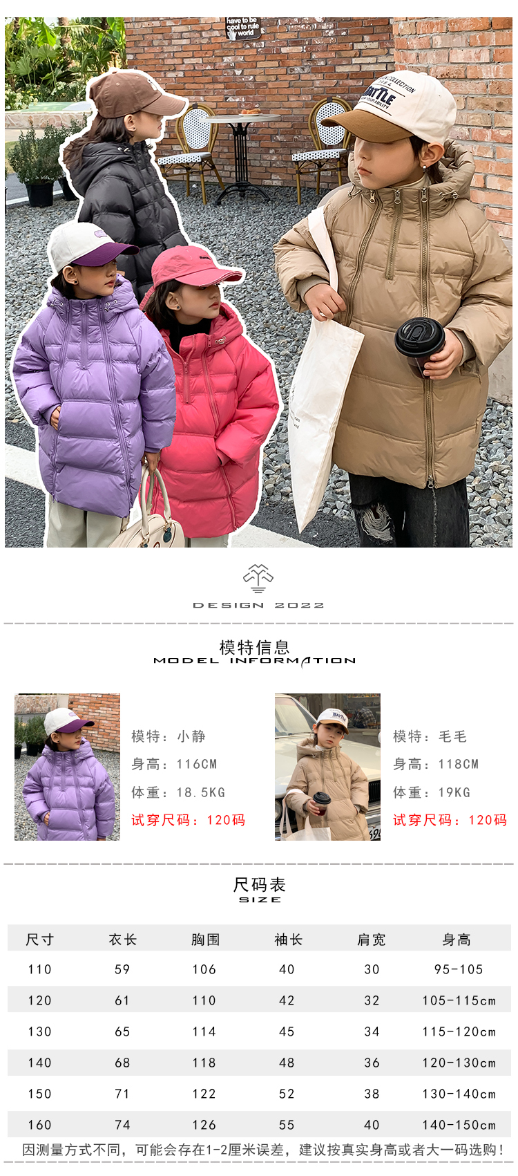 反季特卖 【依珊恋】男女儿童冲锋衣羽绒服2211+中长厚款羽绒服2218