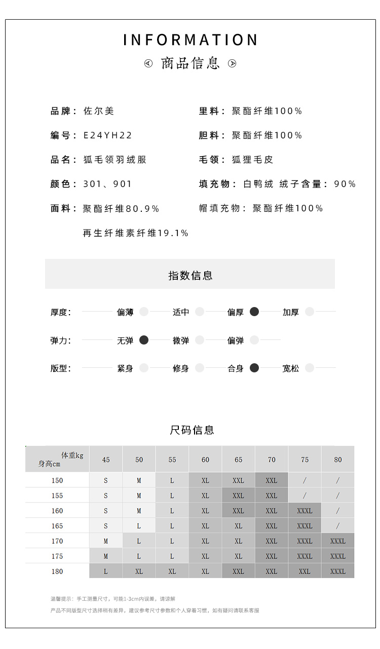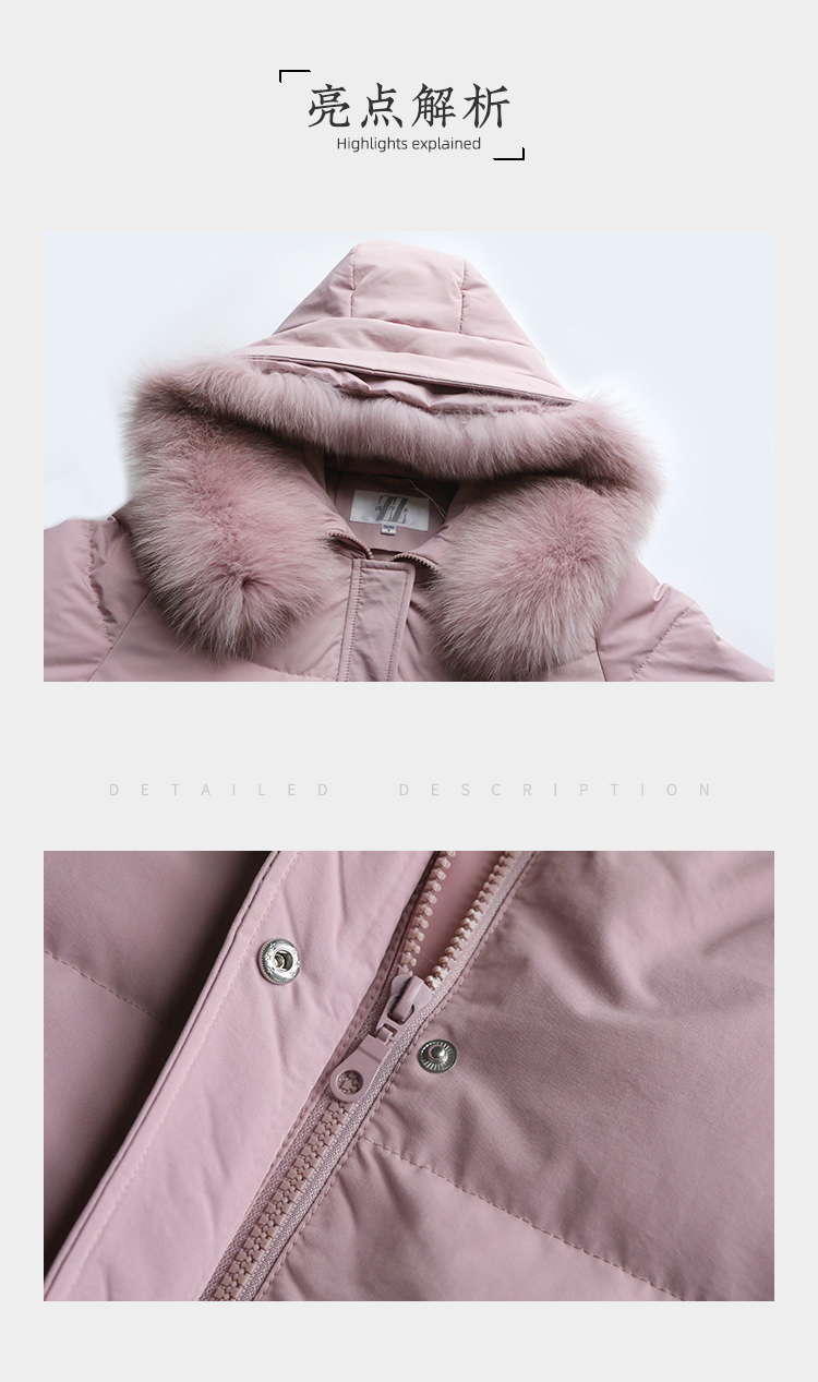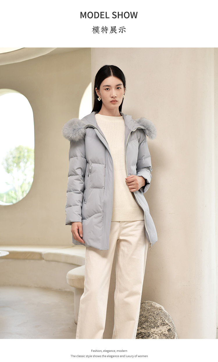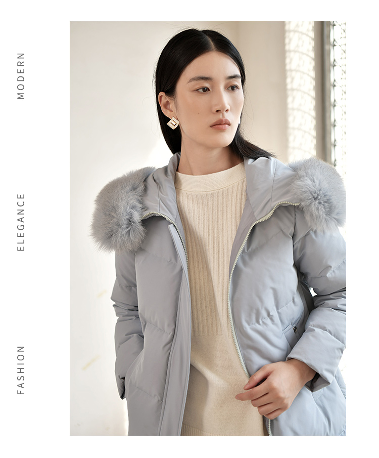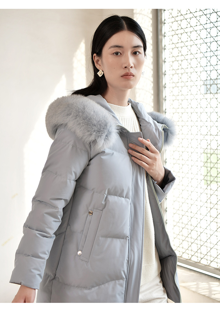 佐尔美冬季新款 气质纯色90白鸭绒狐毛领羽绒服女E24YH22