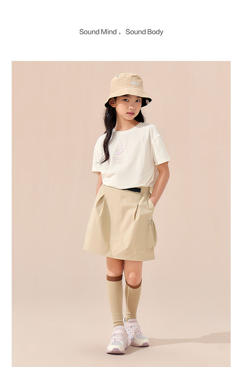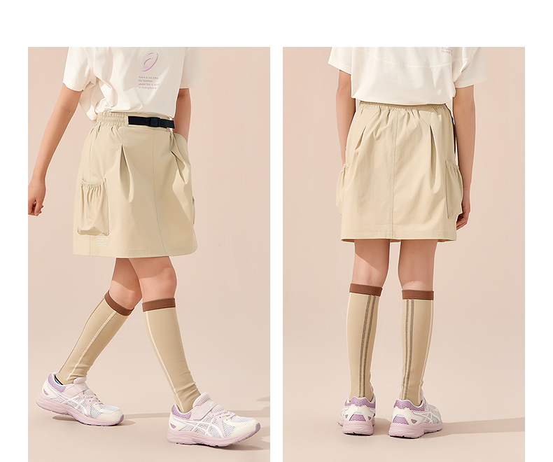 ASICS/亚瑟士童装25年夏新款女童三防梭织轻户外短裙舒适带打底裤