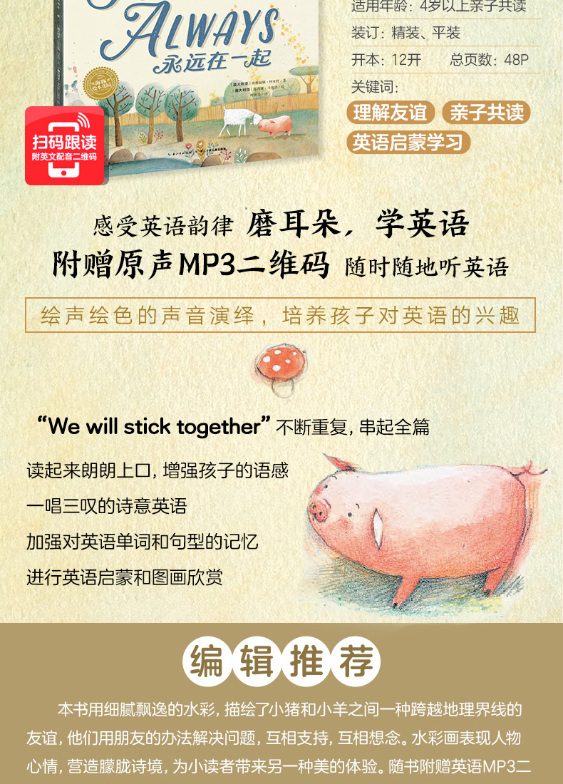 海豚绘本花园:永远在一起中英双语平装点读绘本人人应读的枕边书