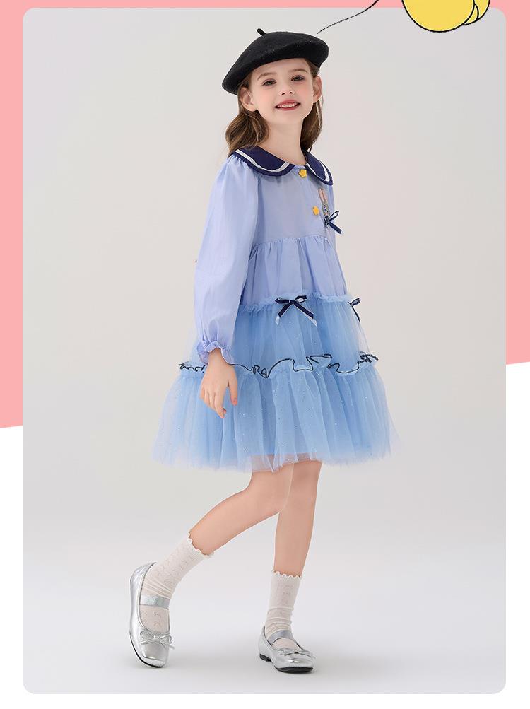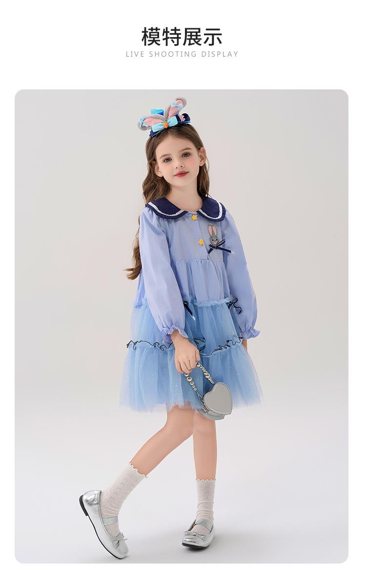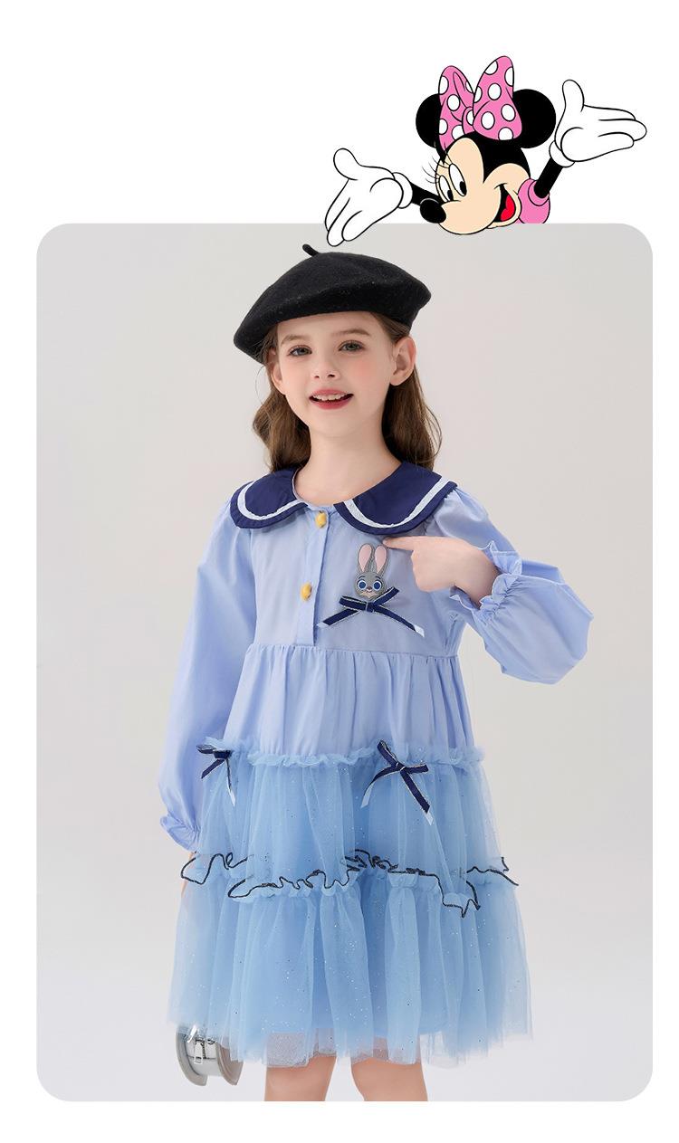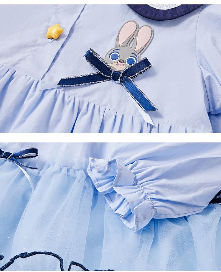 迪士尼童装女童连衣裙疯狂动物城兔子警官中大童纯棉学院儿童裙子