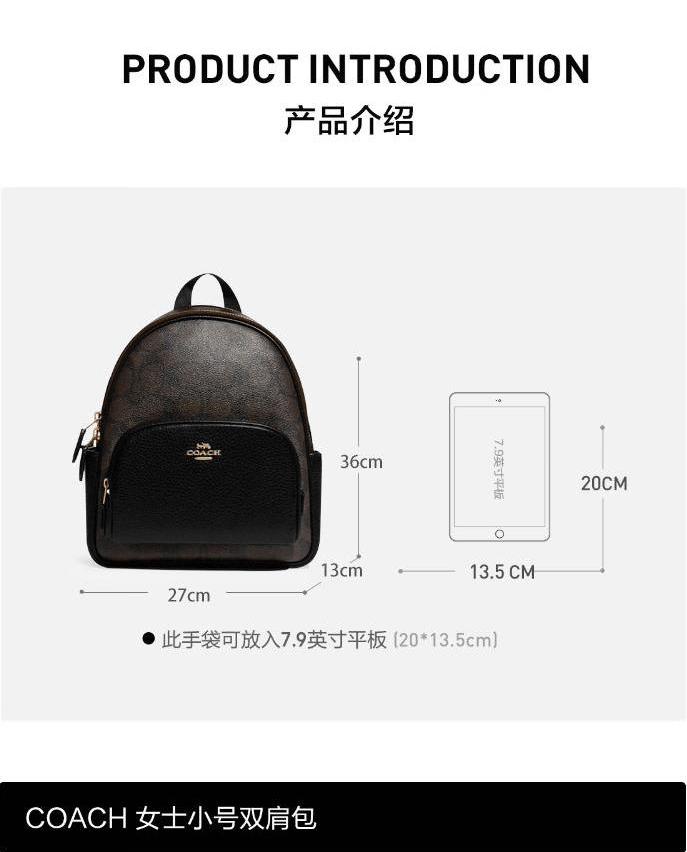【经典双肩】COACH/蔻驰 新款花双肩包Court系列奥莱款中号PVC配皮双肩背包(尺寸约长27*宽13*高36cm)香港直邮 清关约7个工作日-w