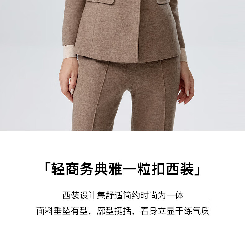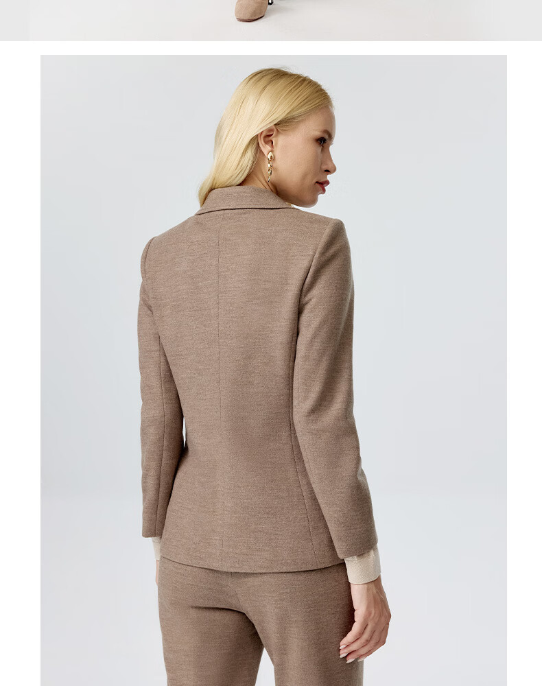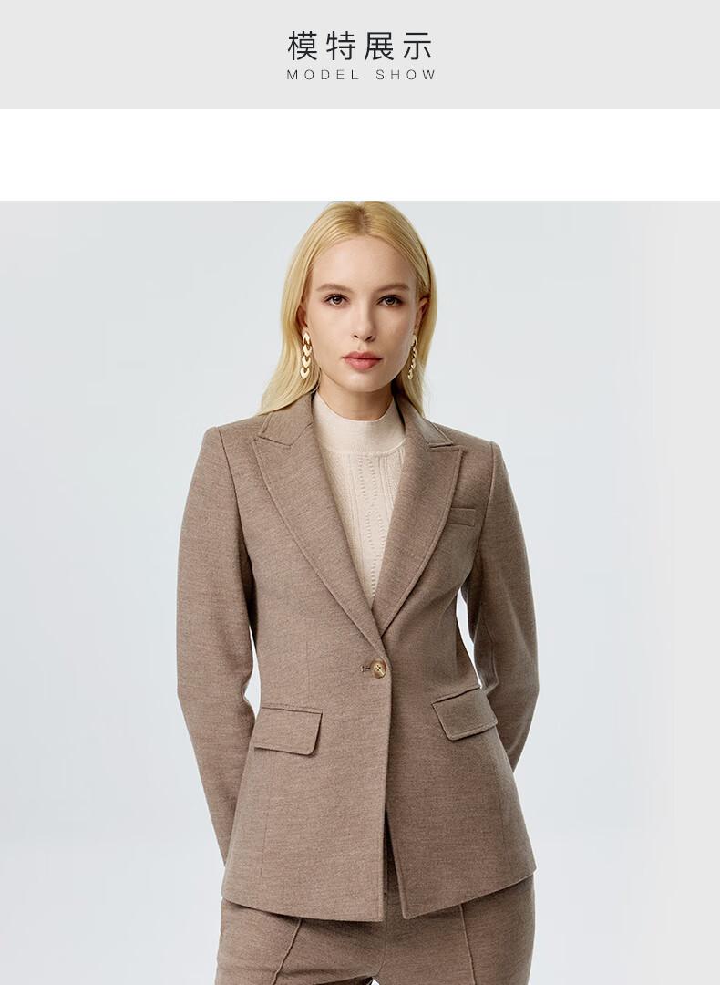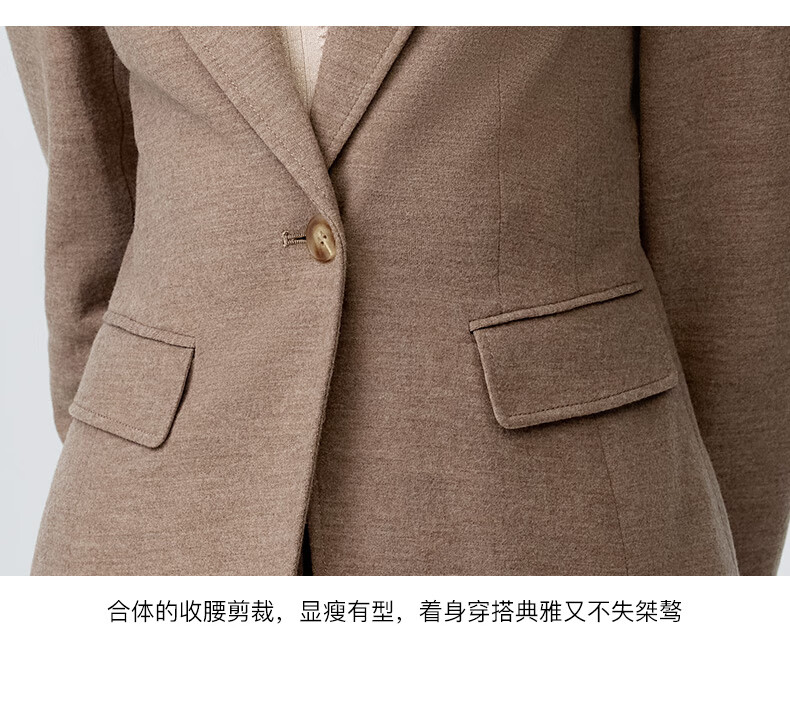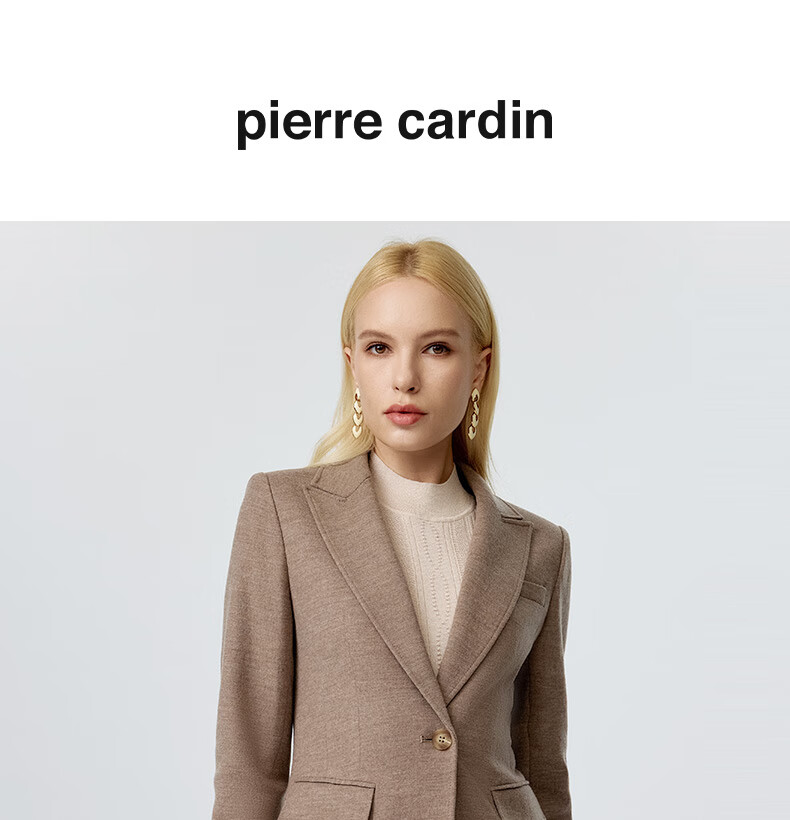 皮尔卡丹女装西装秋冬咖色高级感羊毛修身西服外套P3355U3954K1