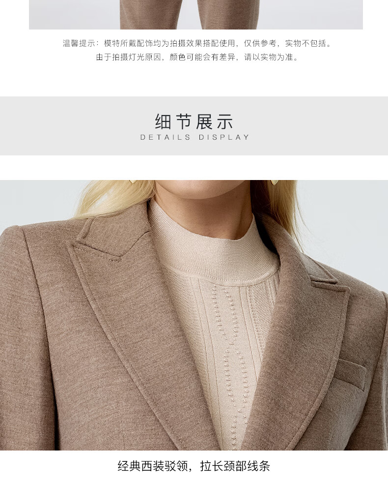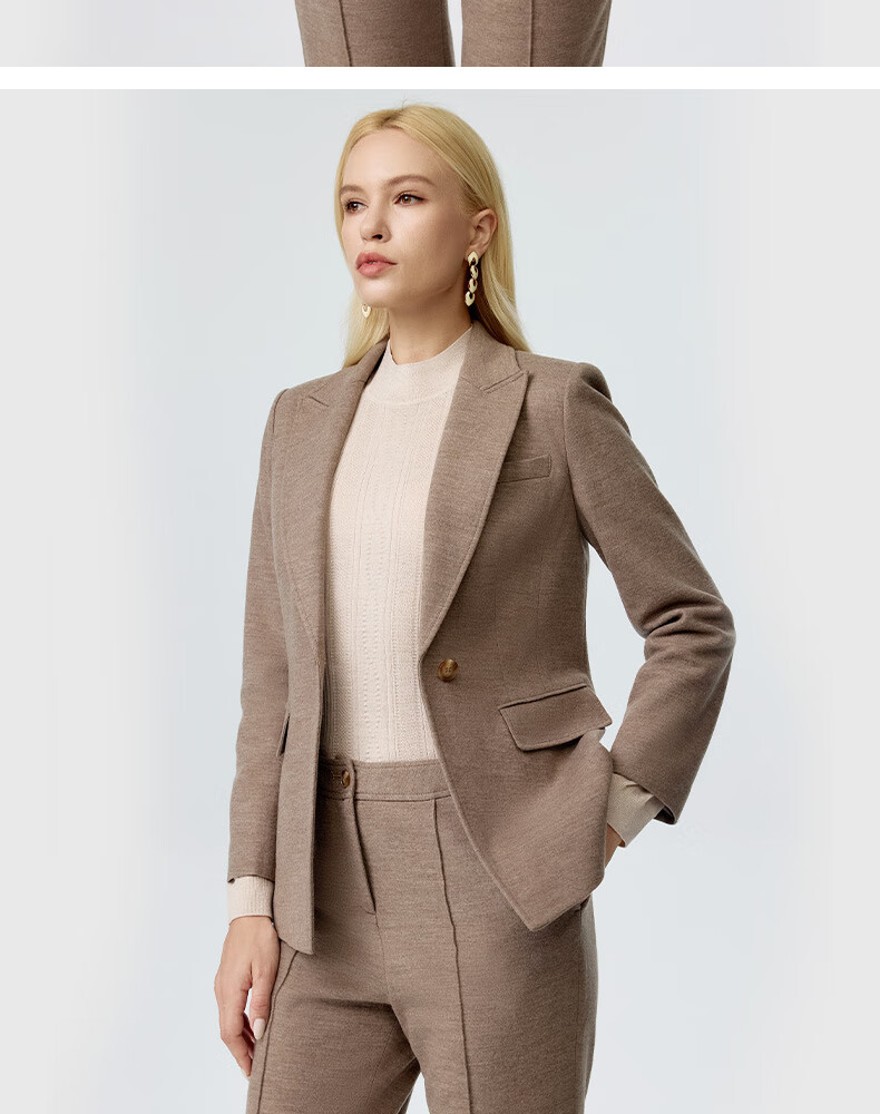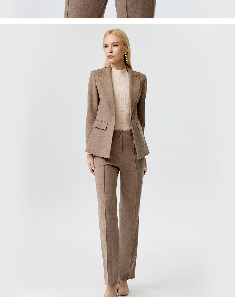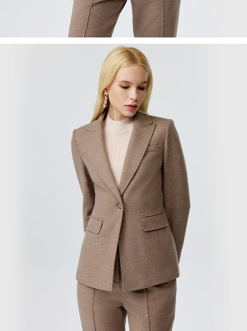 皮尔卡丹女装西装秋冬咖色高级感羊毛修身西服外套P3355U3954K1