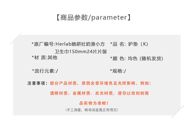 Herlab她研社奶滑小方卫生巾150mm24片护垫158743699