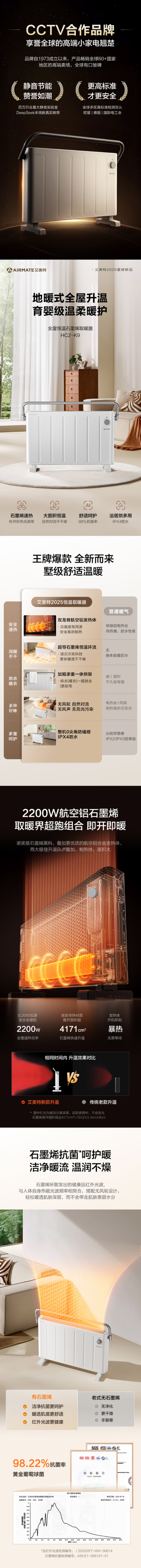艾美特(510827)取暖器欧式快热炉家用电暖器立式电暖气速热欧式快热炉卧室客厅取暖带烘衣架 HC22-K9