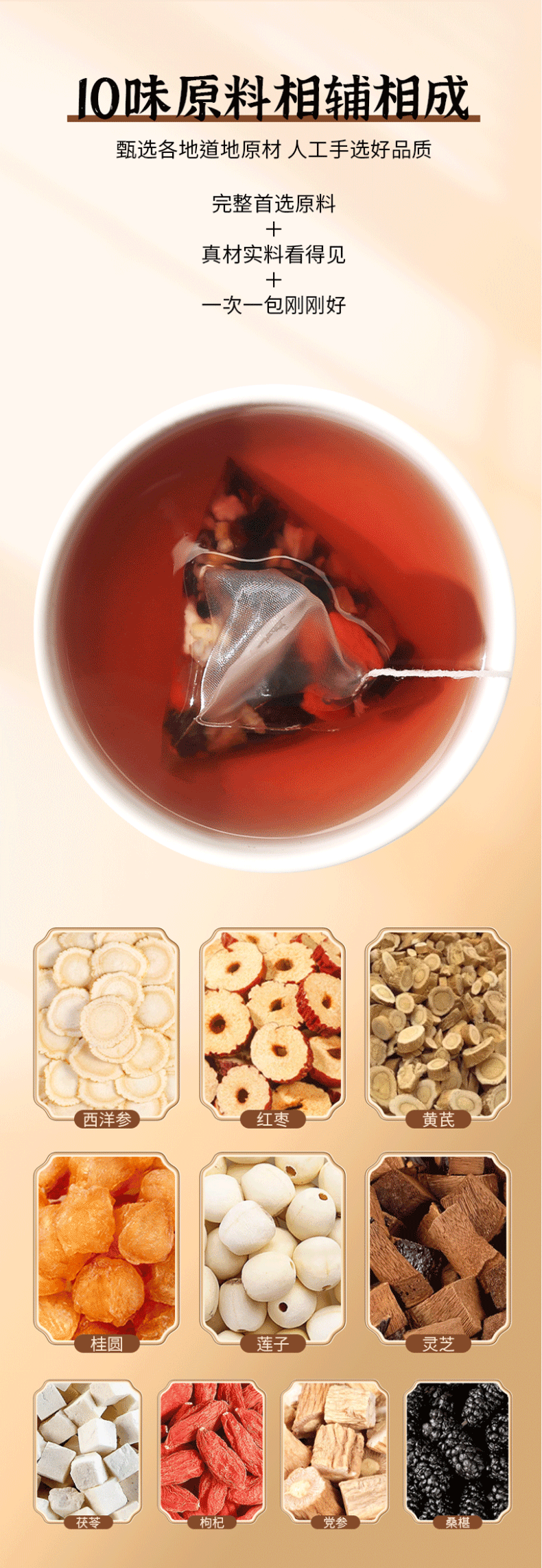 养生茶 西洋参灵芝黄芪茶党参枸杞红枣茶桂圆桑葚茯苓茶组合茶包气血茶