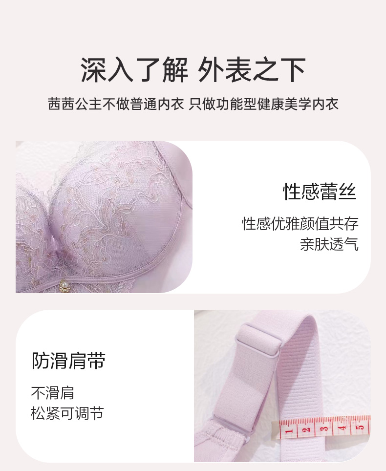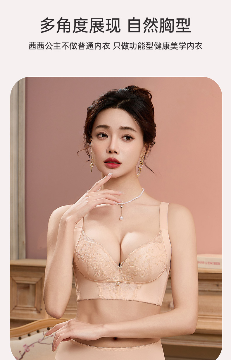 茜茜公主透气上托聚拢文胸侧收副乳防下垂蕾丝胸罩软 精油杯 无圈内衣 芙蓉千金精油杯调整型文胸