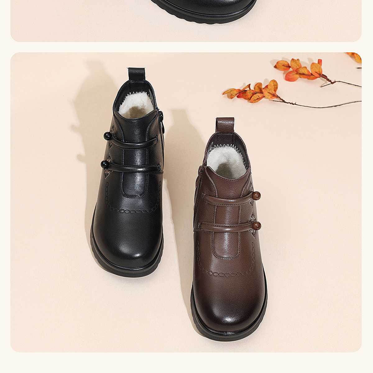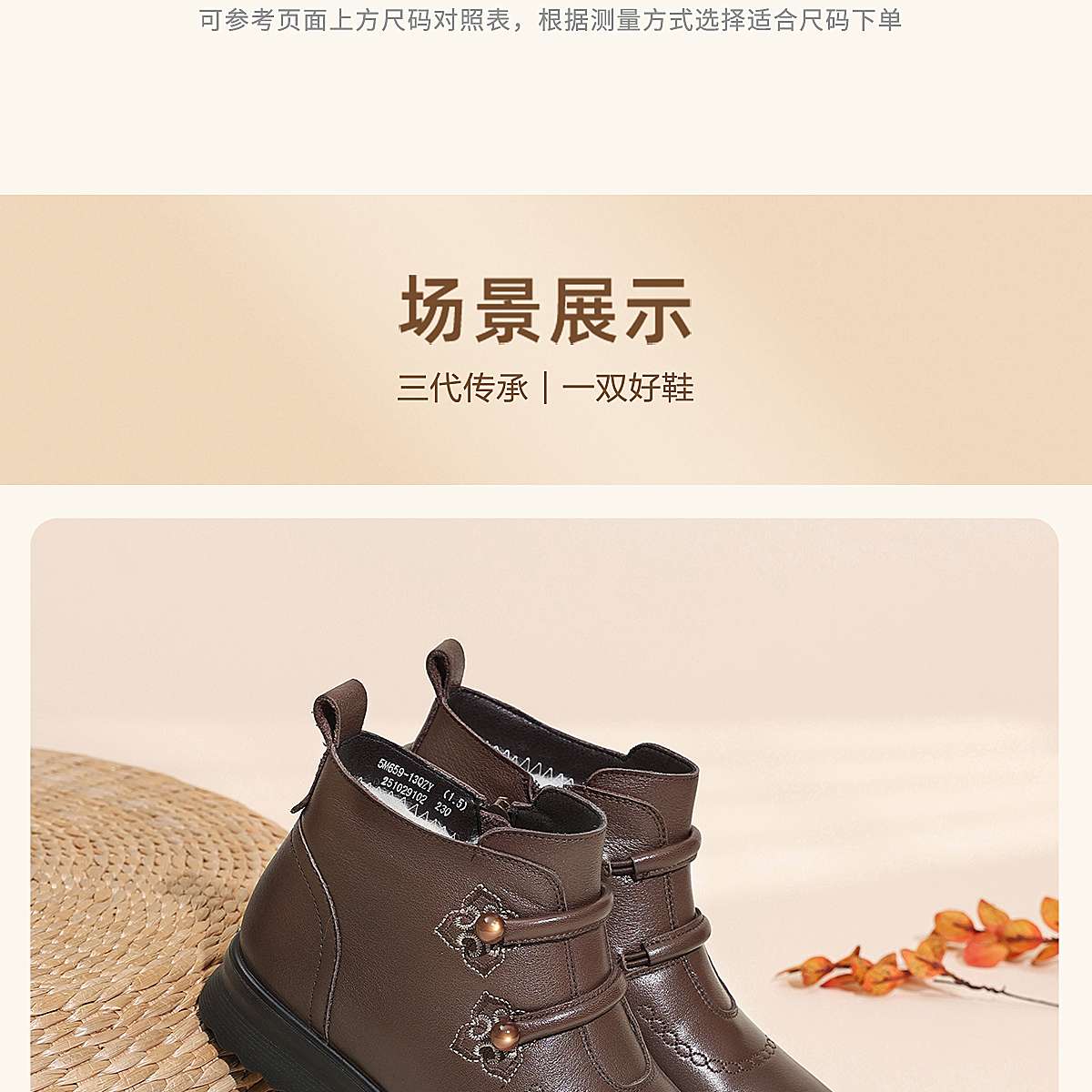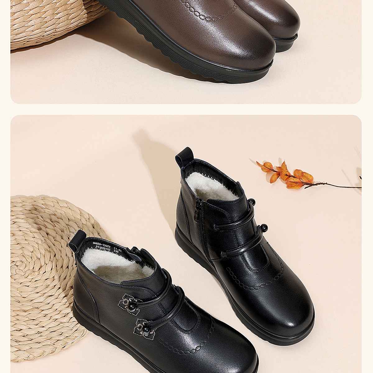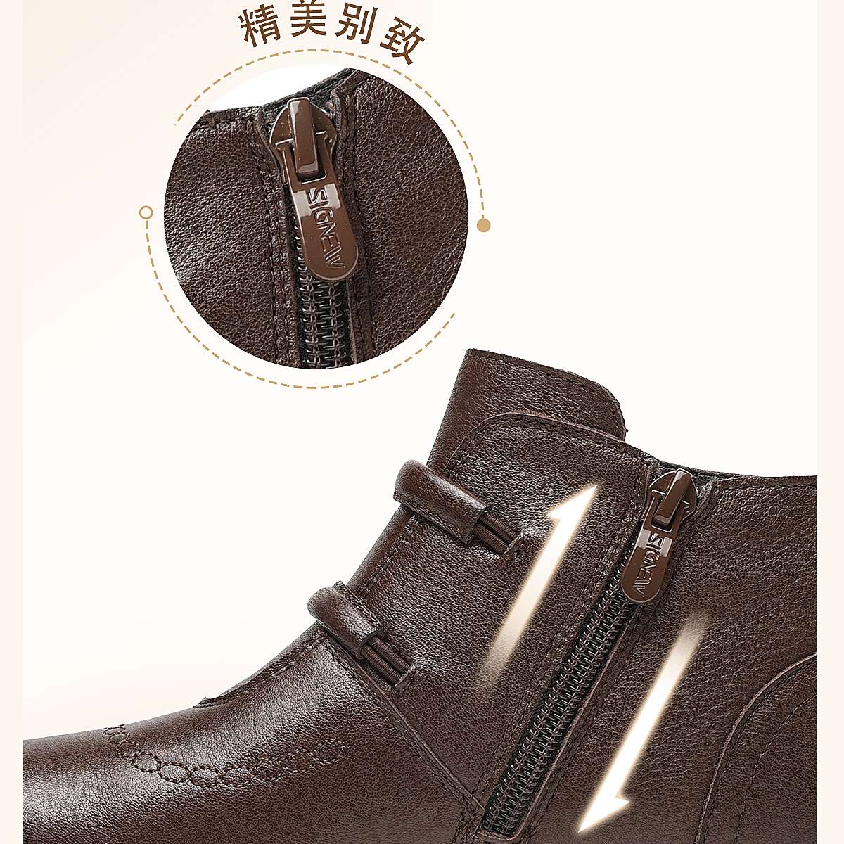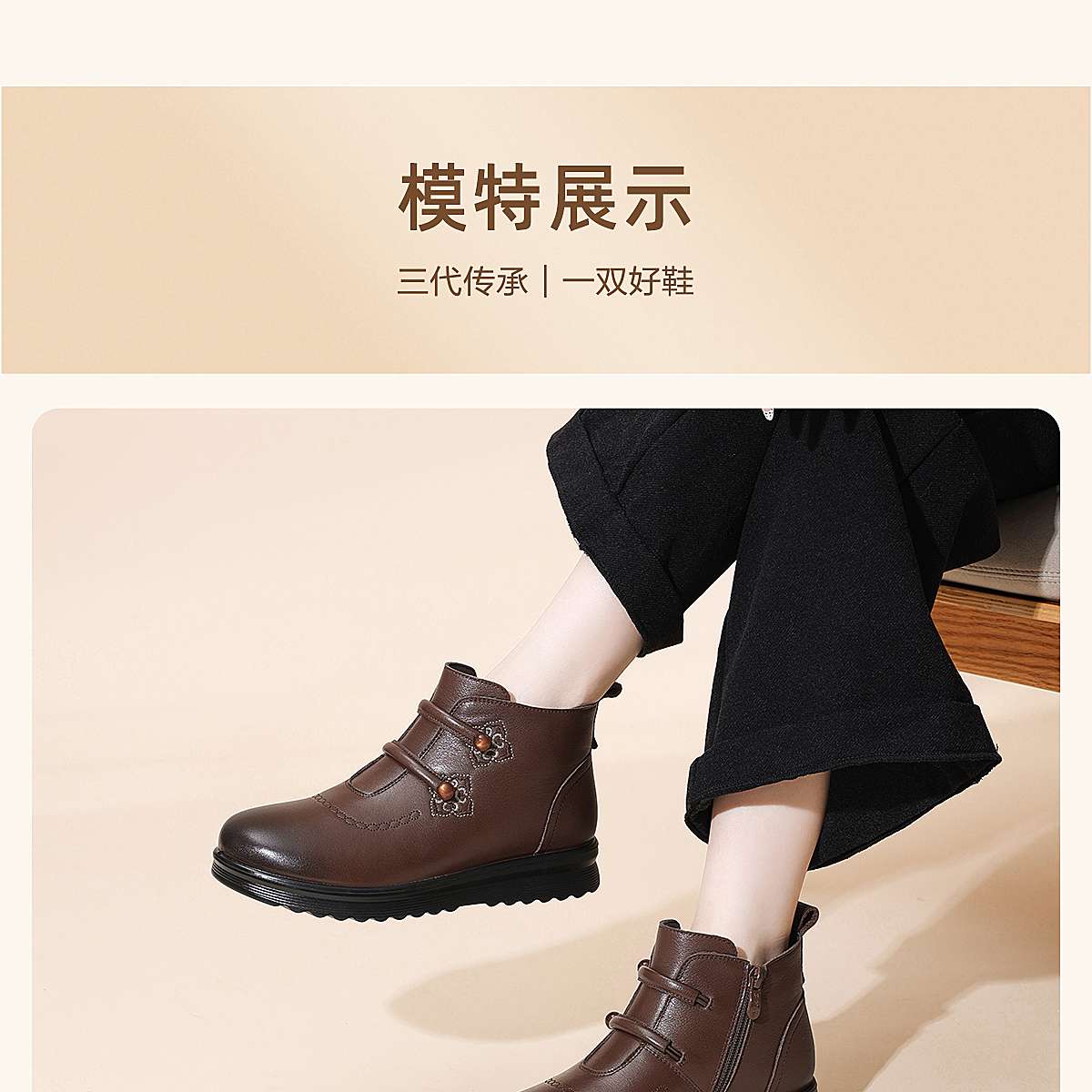 信诺真皮妈妈鞋加绒短靴女平底软底舒适皮鞋羊毛棉鞋2025冬季新款5M659-13QZY