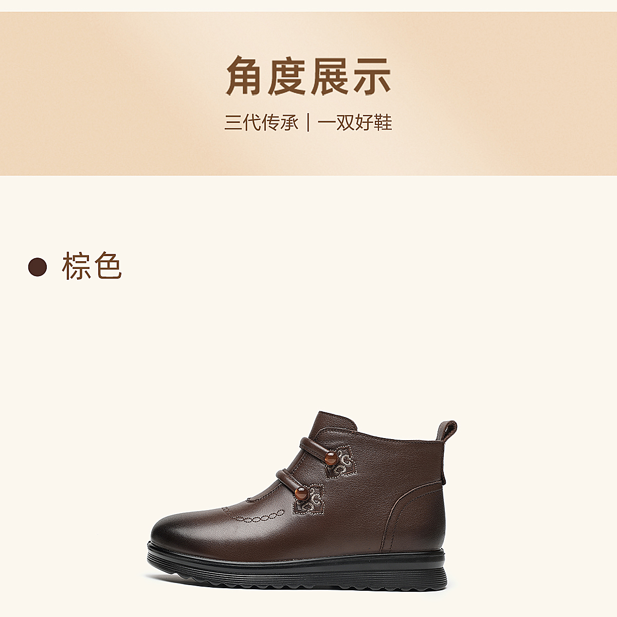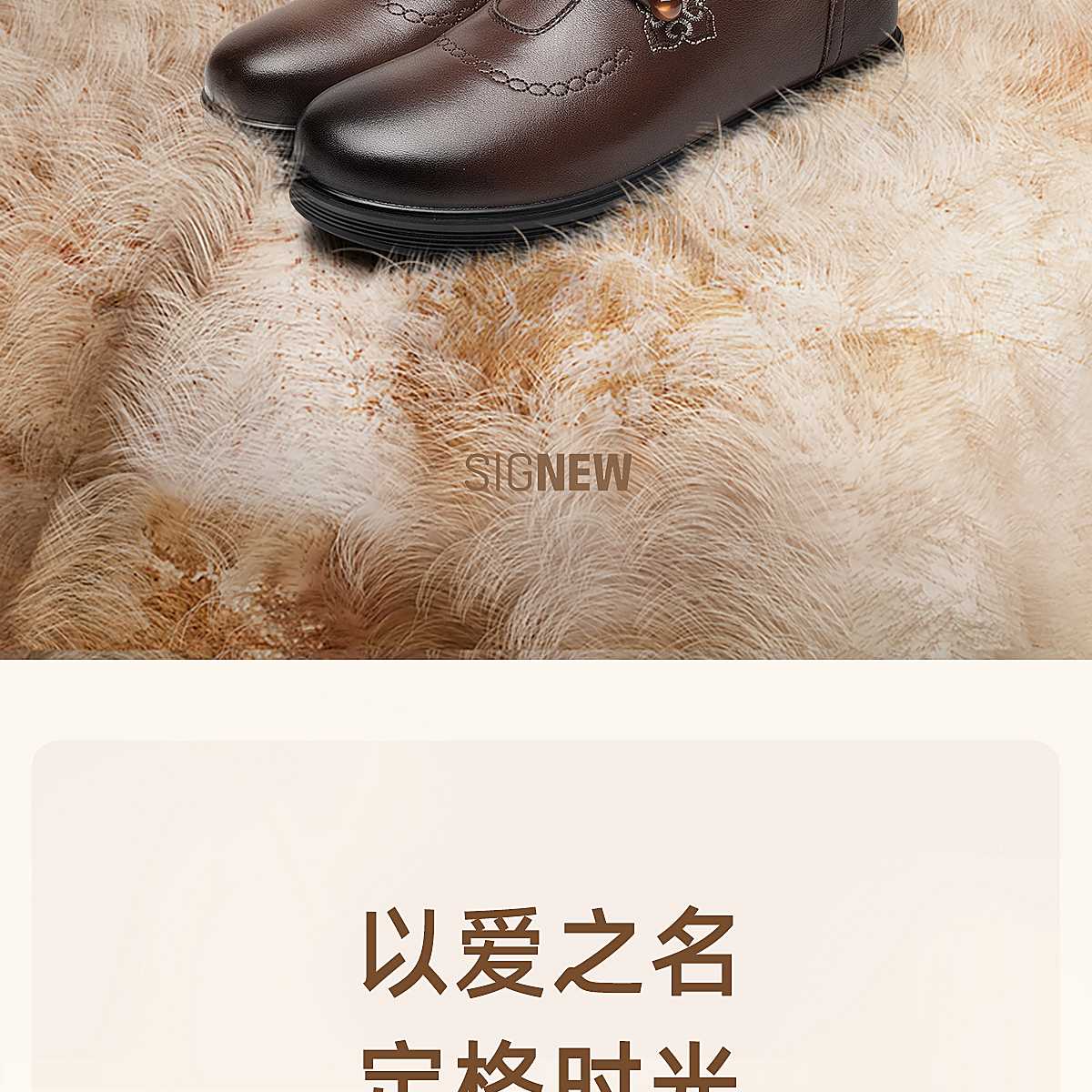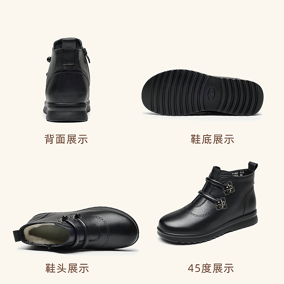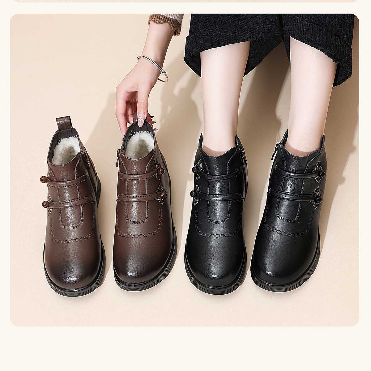 信诺真皮妈妈鞋加绒短靴女平底软底舒适皮鞋羊毛棉鞋2025冬季新款5M659-13QZY