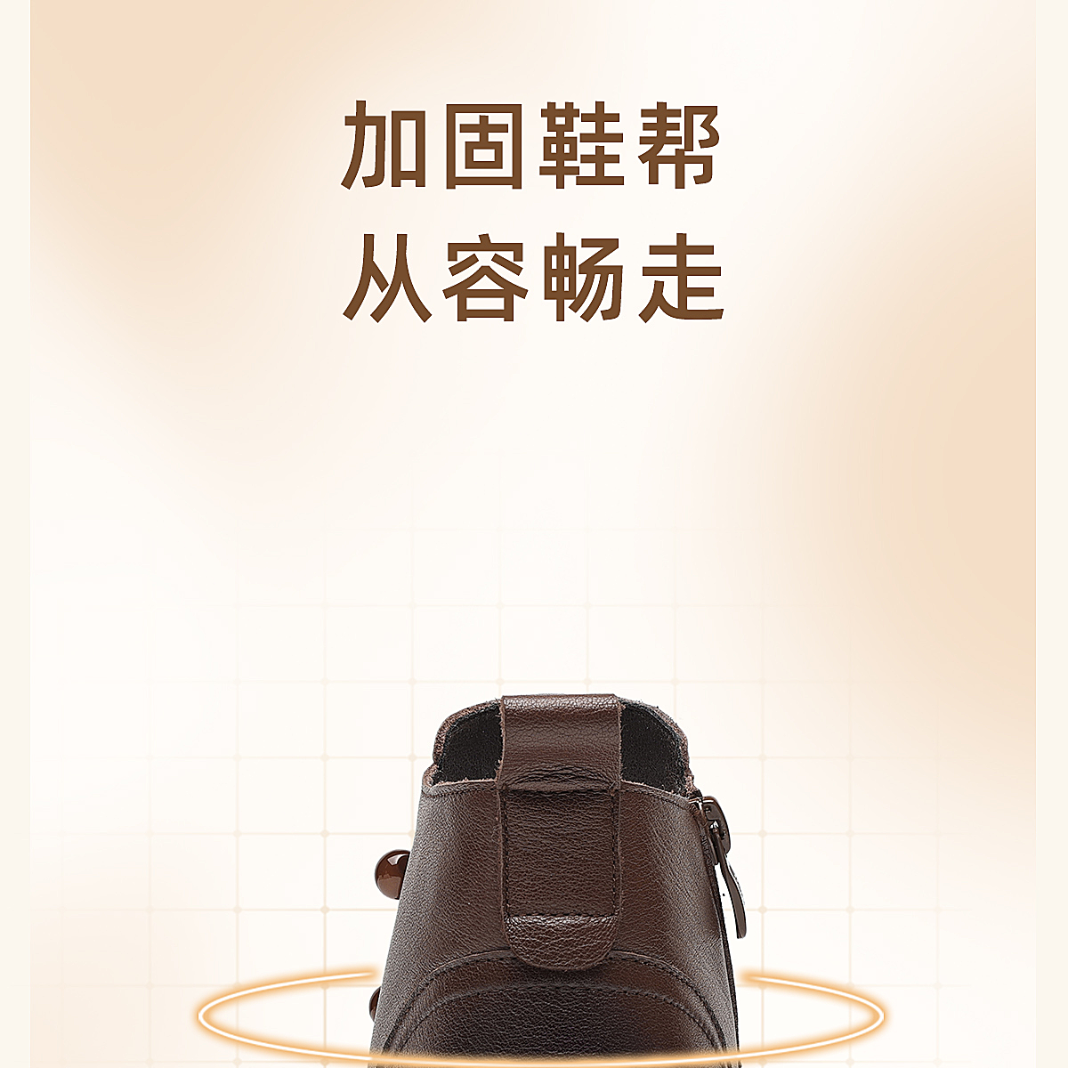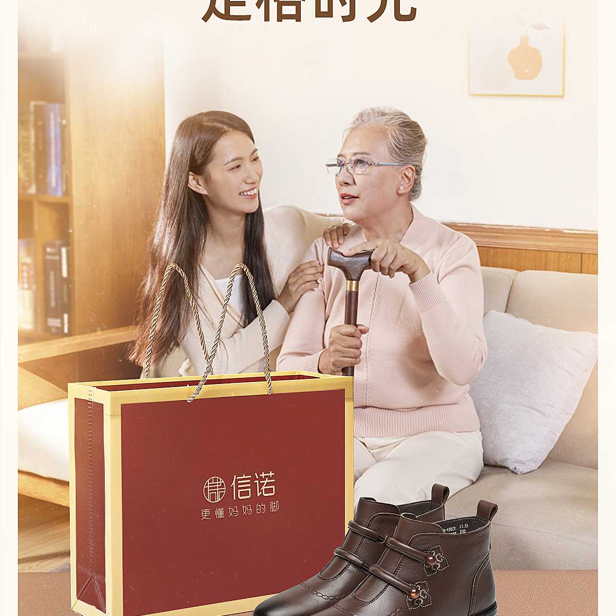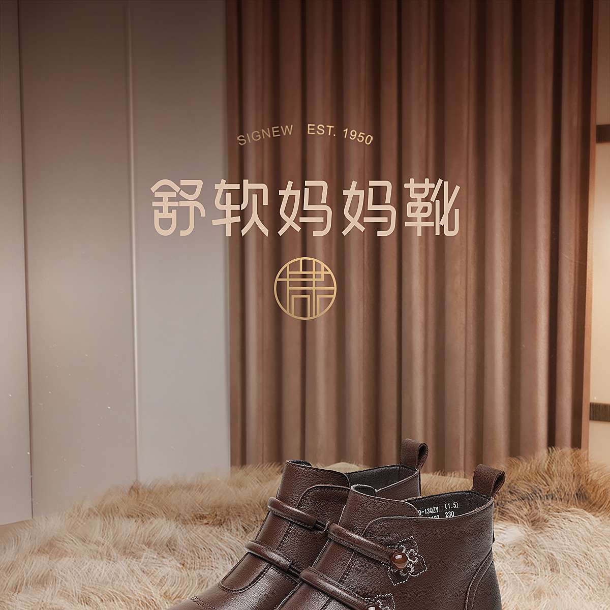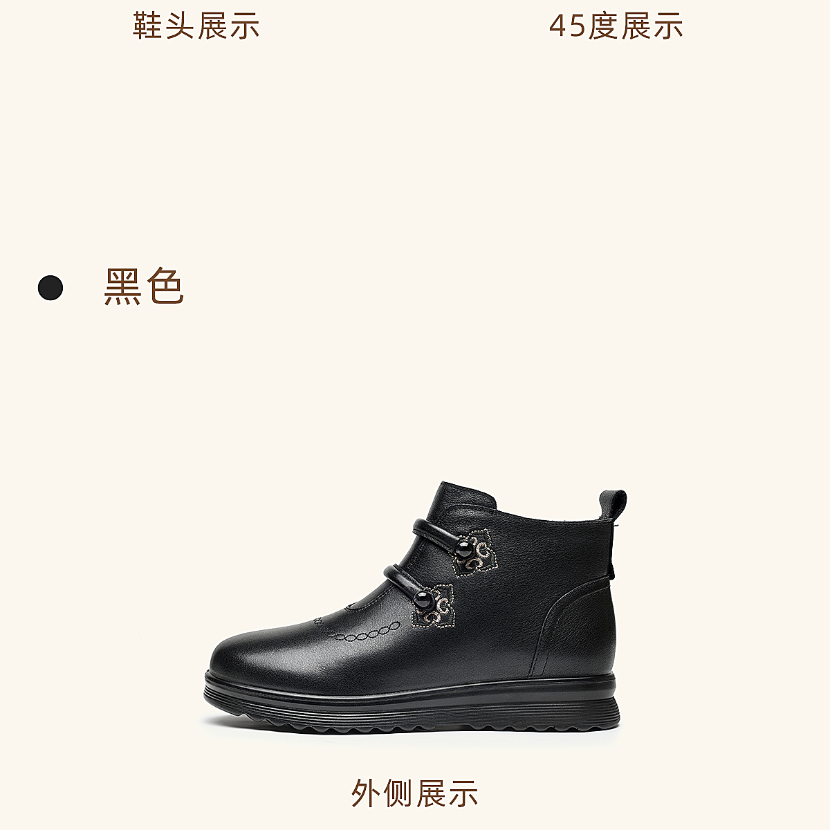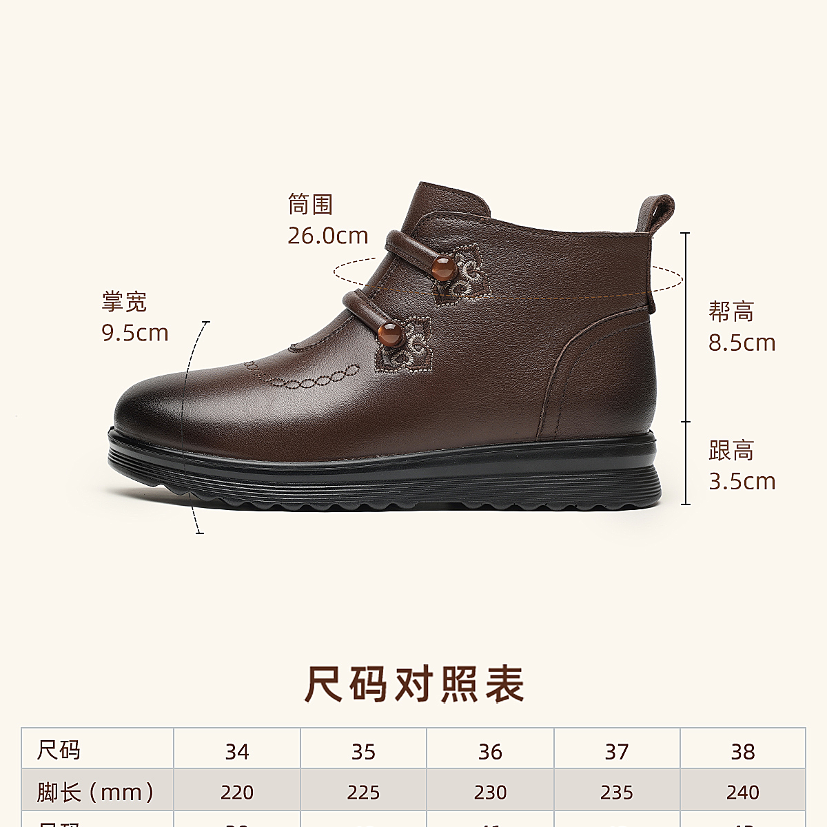 信诺真皮妈妈鞋加绒短靴女平底软底舒适皮鞋羊毛棉鞋2025冬季新款5M659-13QZY