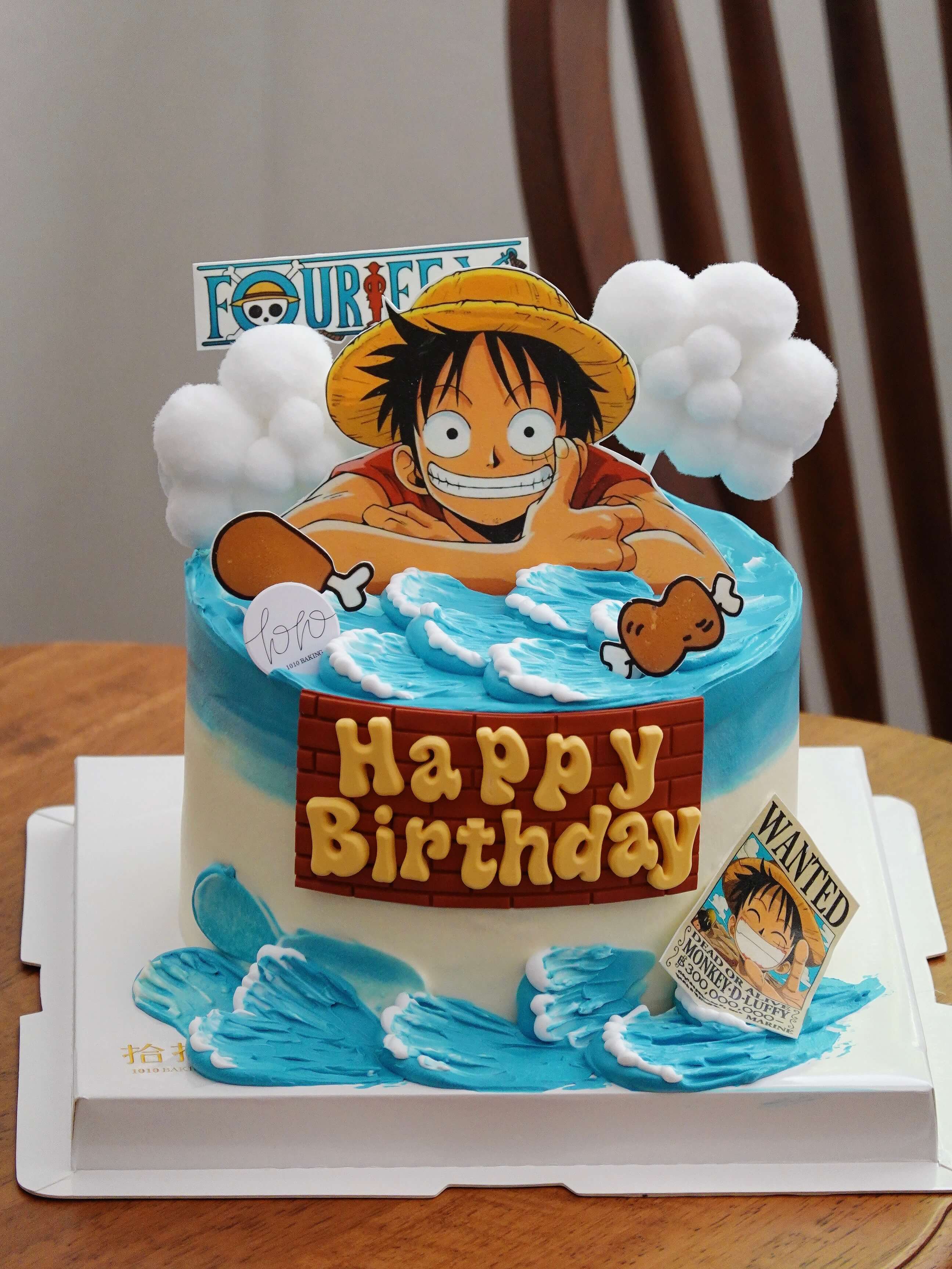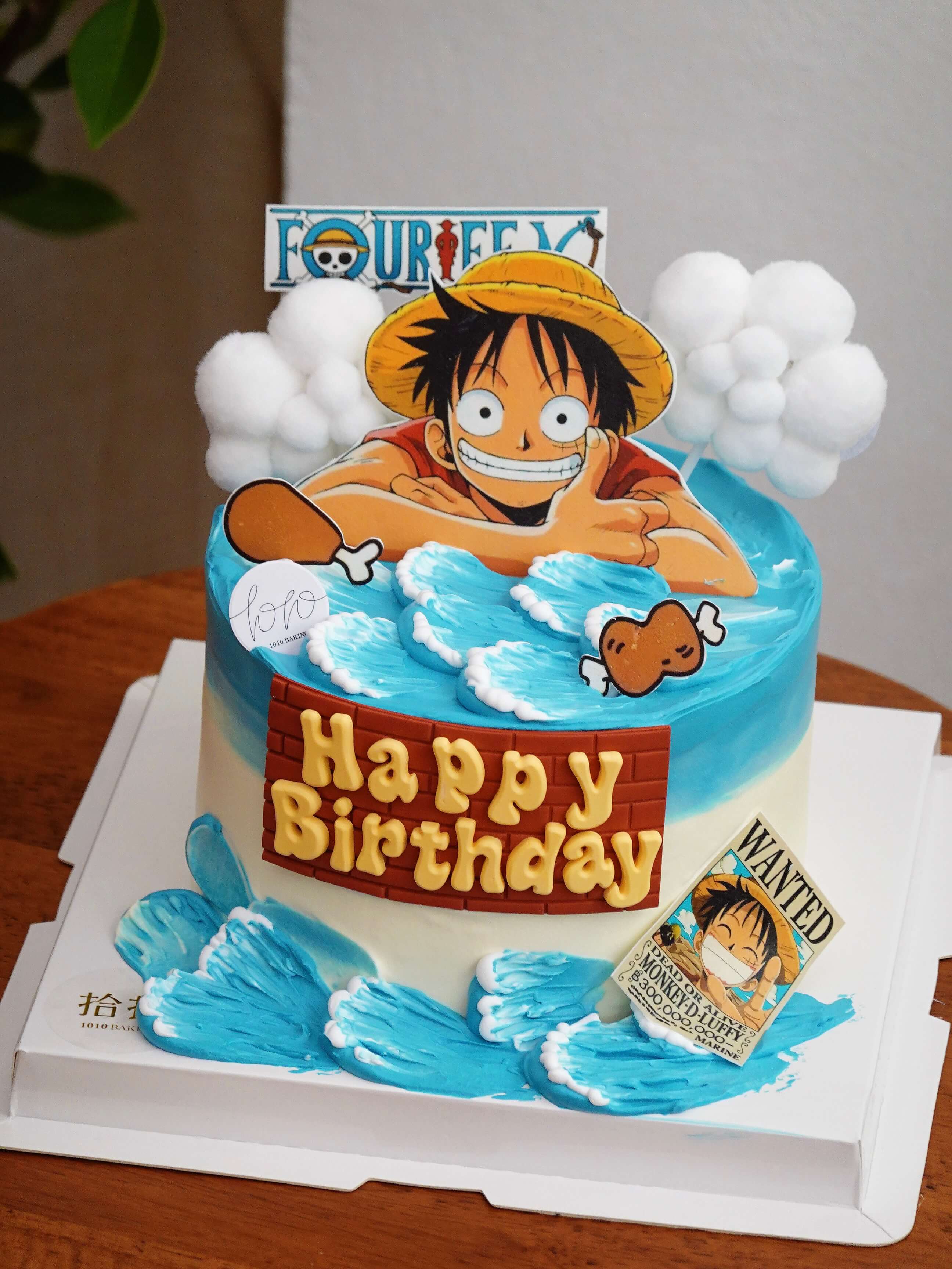 「海贼王-路飞」翻糖巧克力·巧克力糯米糖纸·订制照片·100%动物奶油(附图6寸·提前48小时预订)