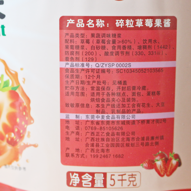 5kg 三果 碎粒草莓果酱 碎粒草莓果粒馅 蛋糕面包夹心酸奶饮品果馅