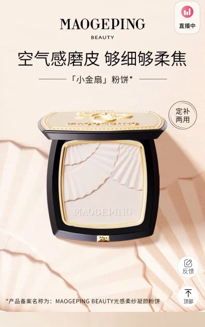 毛戈平光感柔纱凝颜小金扇粉饼4g/7g/11.5g 粉质细腻持久定妆磨皮 801色号