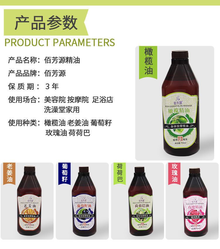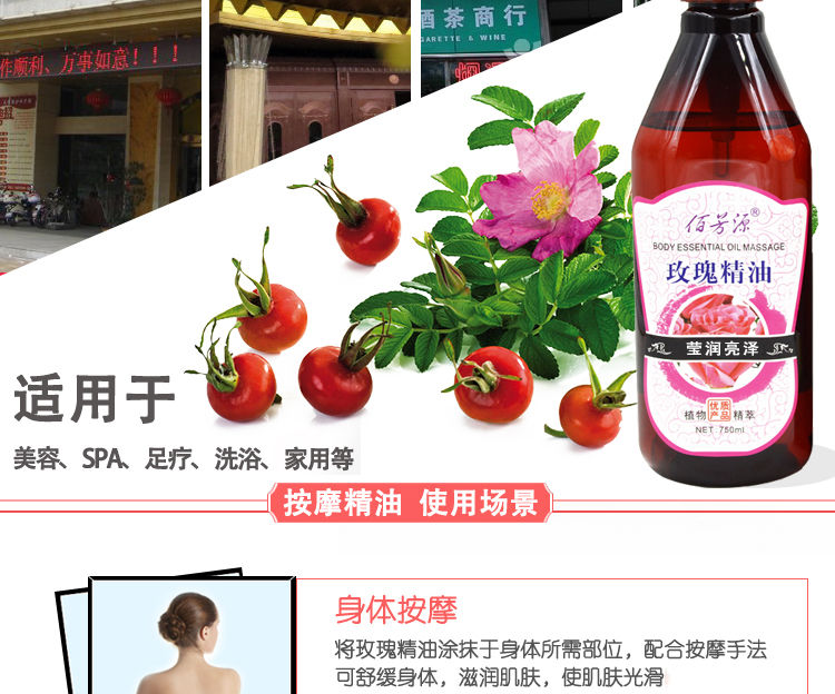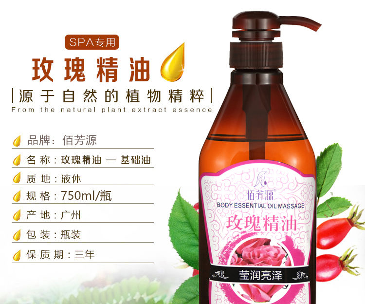 佰芳源玫瑰精油750ml按摩全身体刮痧泰式推背复方按摩油基础油护肤面部
