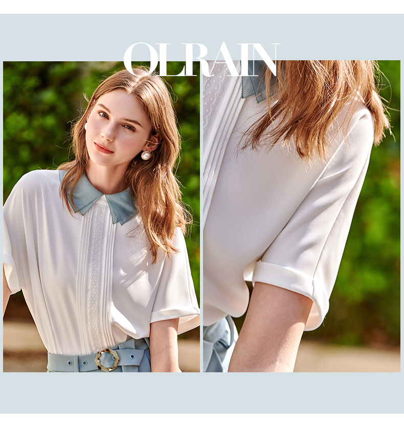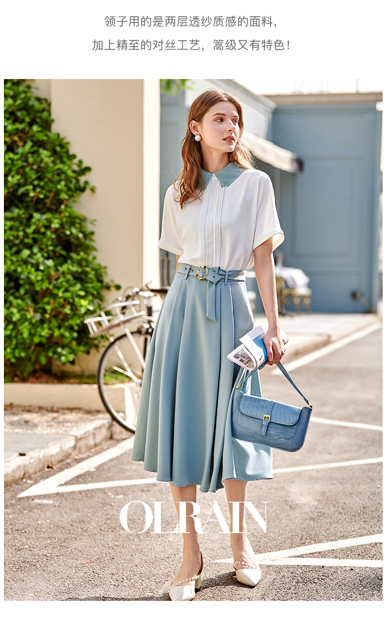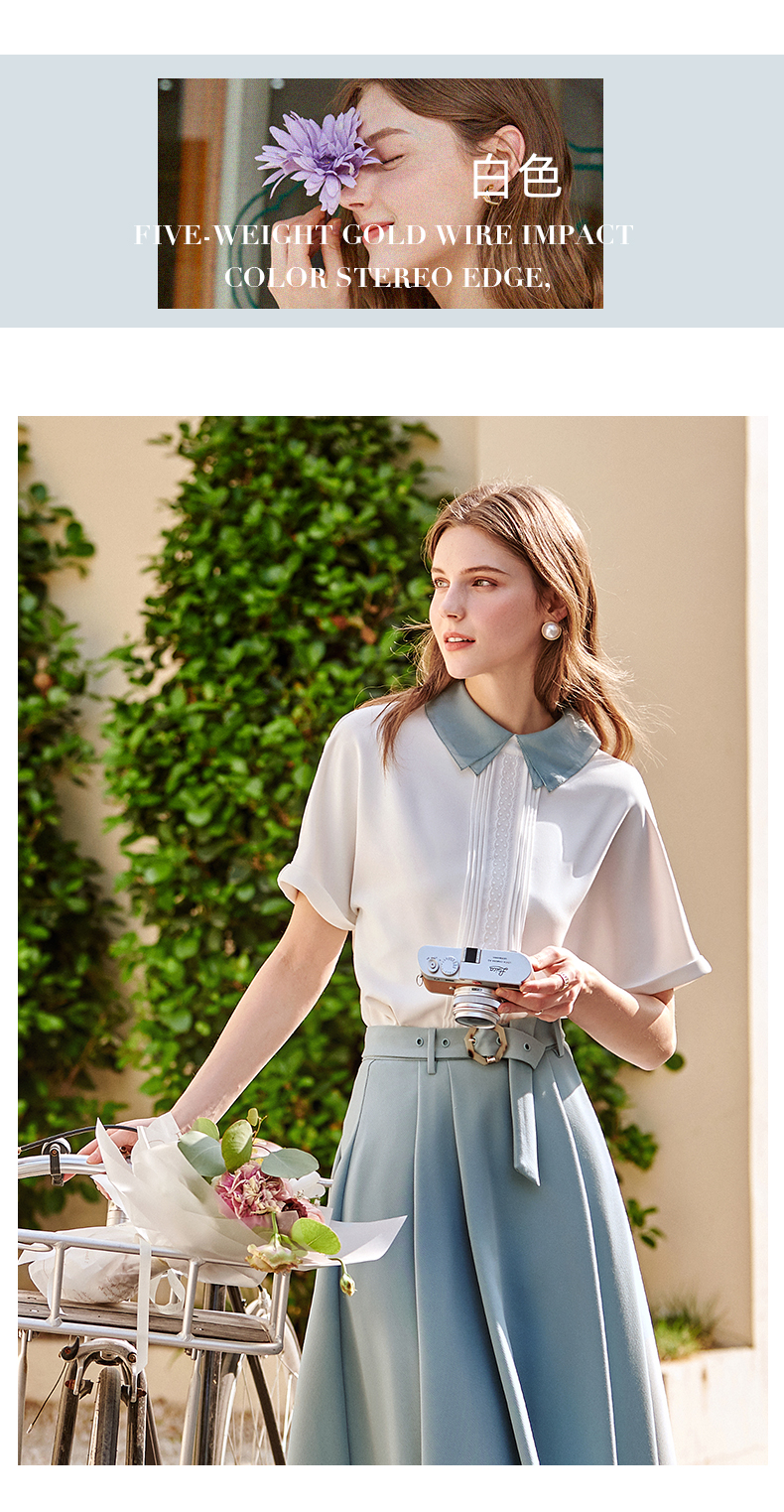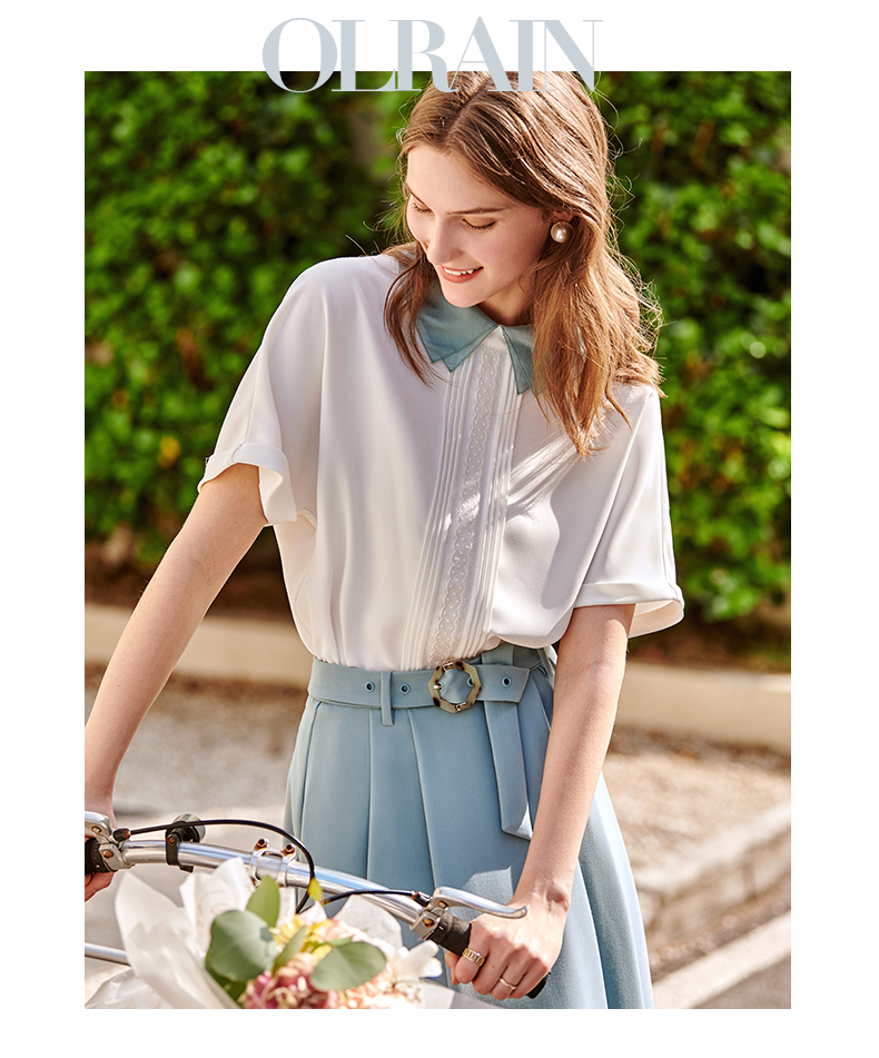 欧芮儿法式雪纺衬衫女2021春夏新款复古优雅时尚洋气短袖白色上衣