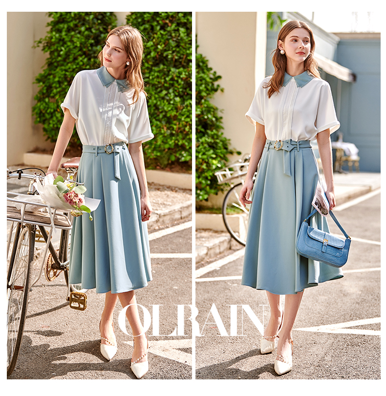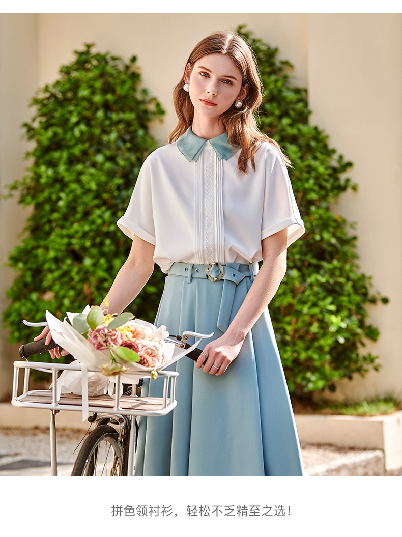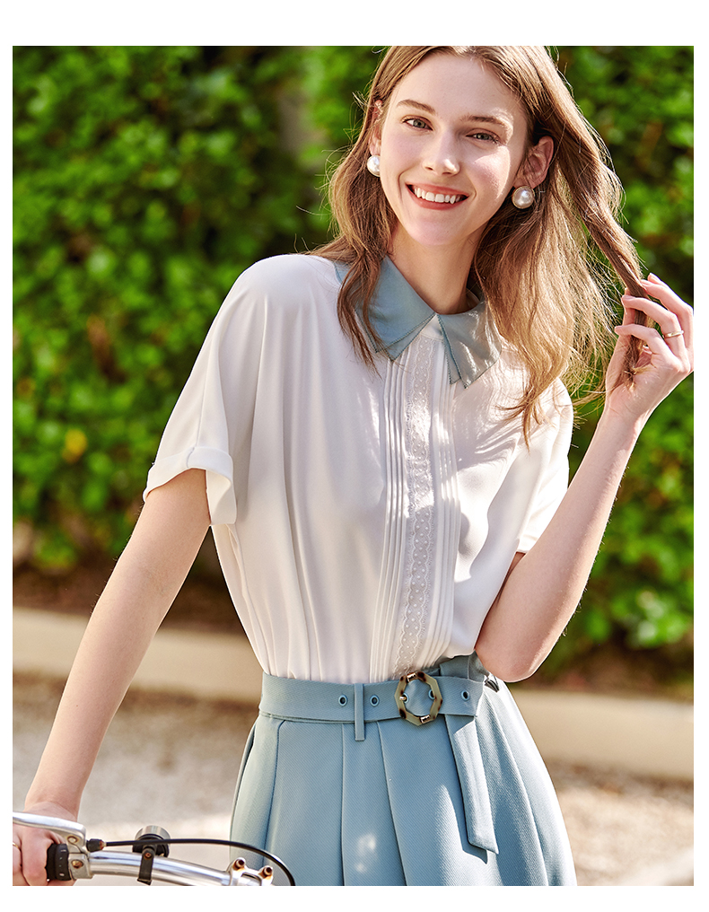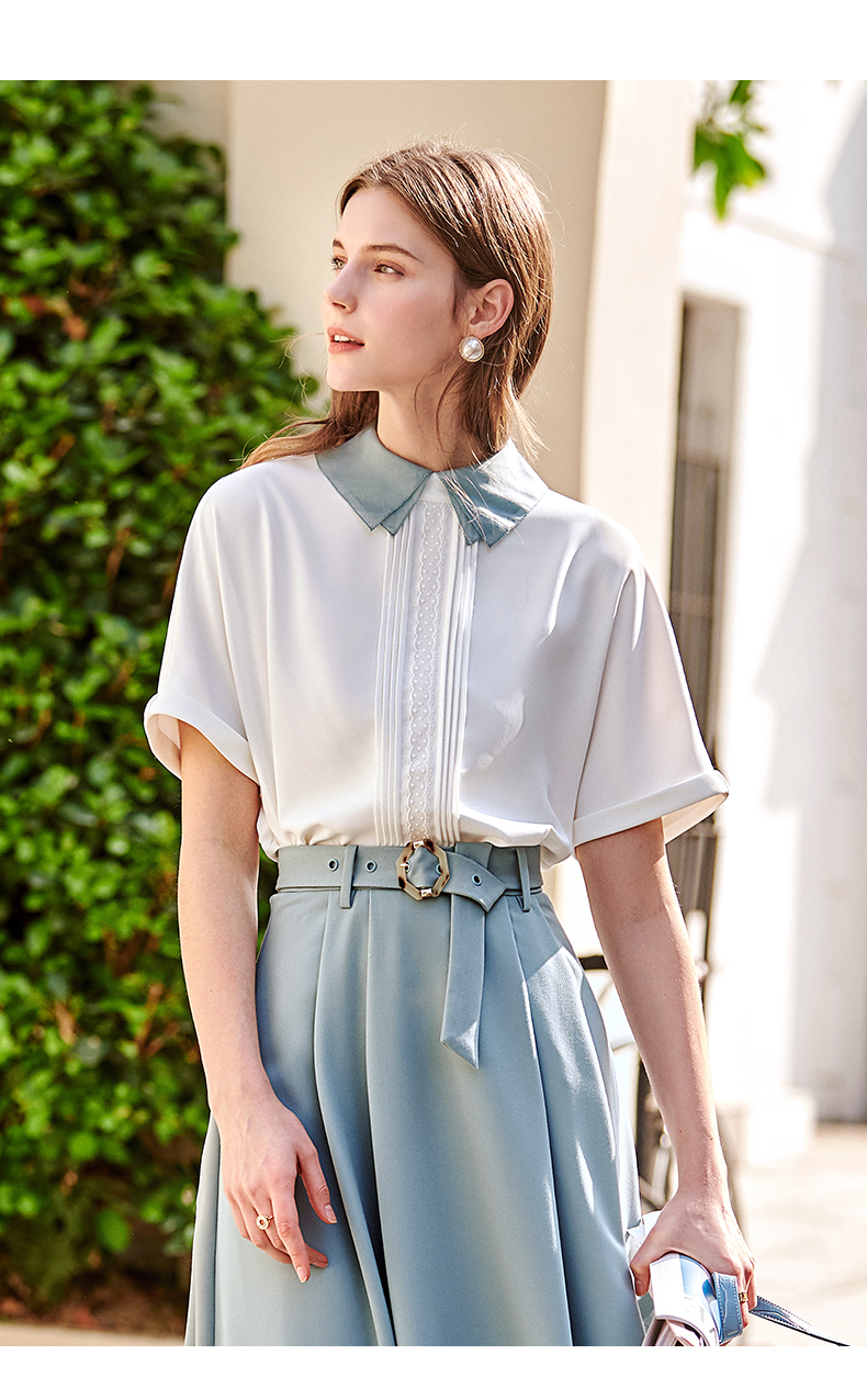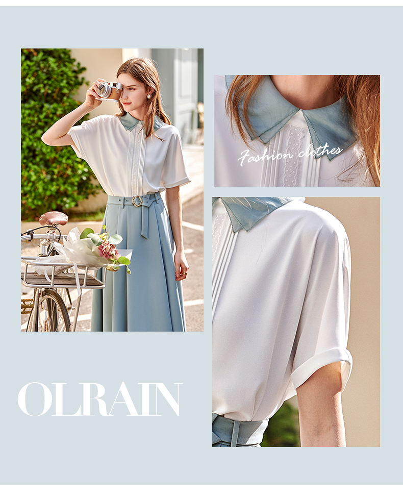 欧芮儿法式雪纺衬衫女2021春夏新款复古优雅时尚洋气短袖白色上衣