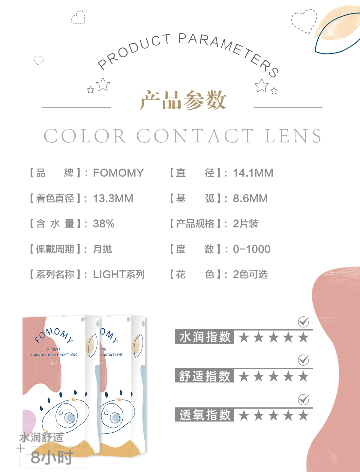 「上海保税仓发货」【清仓款 有效期2027年9月】FOMOMY LIGHT系列 美瞳月抛 2片装