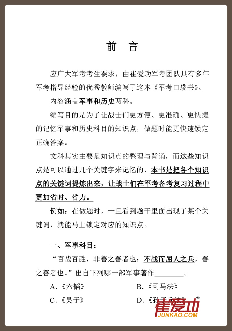 - 崔爱功军考商城,提供士兵考学和提干专业军考复习资料!