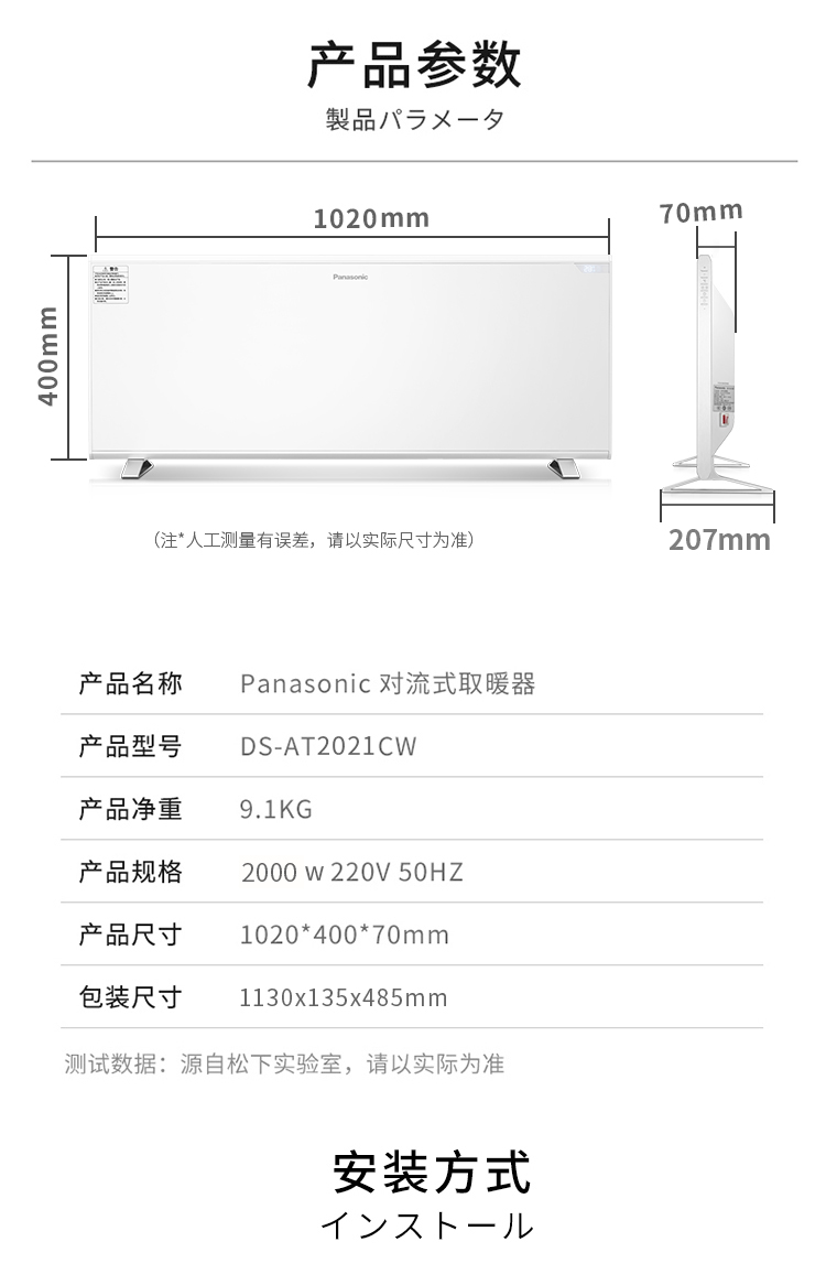松下全屋对流取暖器DS-AT2021CW
