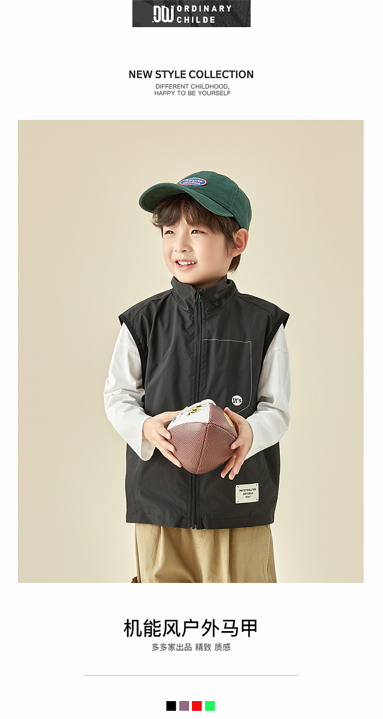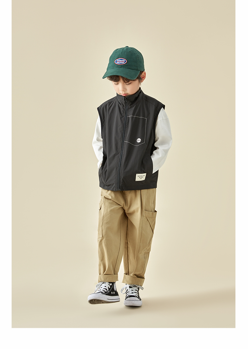 【团购价39.9】多多家男童背心马甲2024春季新款梭织上衣儿童中大童帅气工装外穿9154