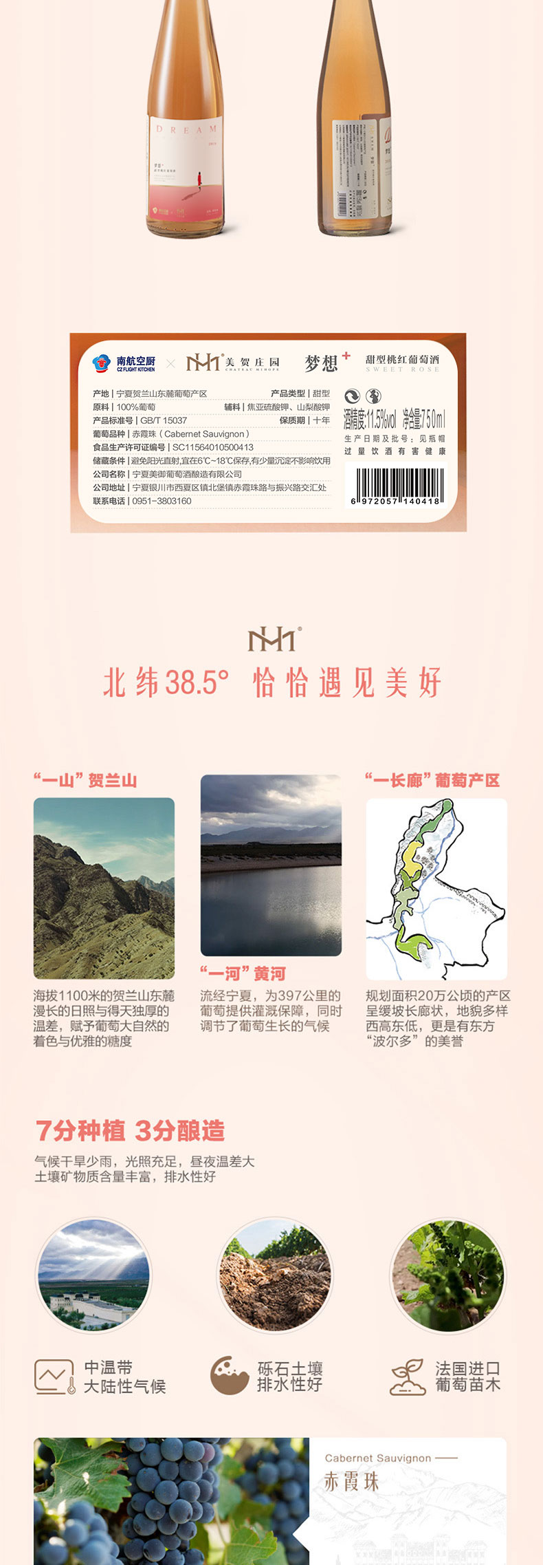 南航空厨 x 美贺庄园【梦想】甜型桃红葡萄酒750ml/瓶【蛋糕券价】