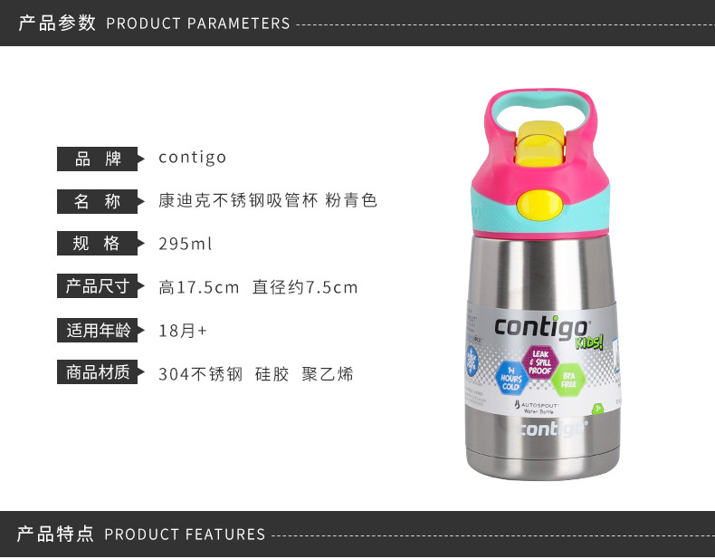 CONTIGO/康迪克 不锈钢保温杯 粉青色 295MLJPY带授权招加盟代理