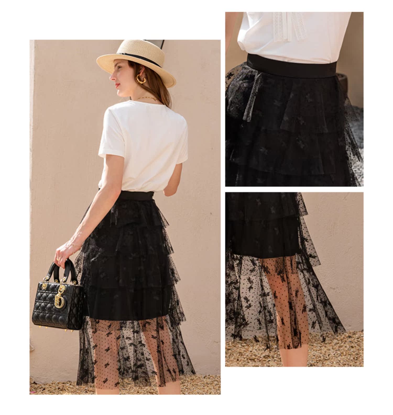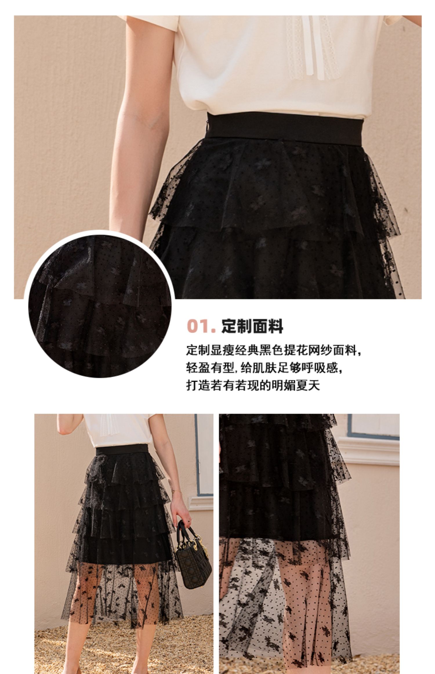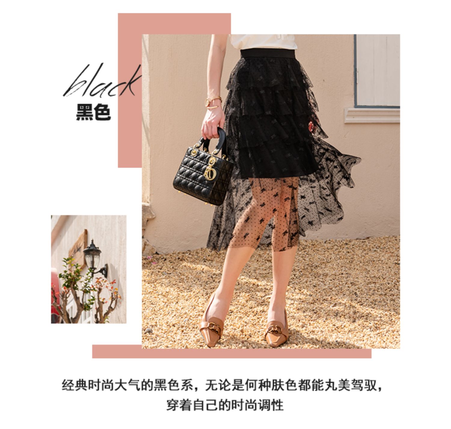 欧芮儿高腰显瘦黑色半身裙女2021新款夏季中长款A字百搭网纱裙ins