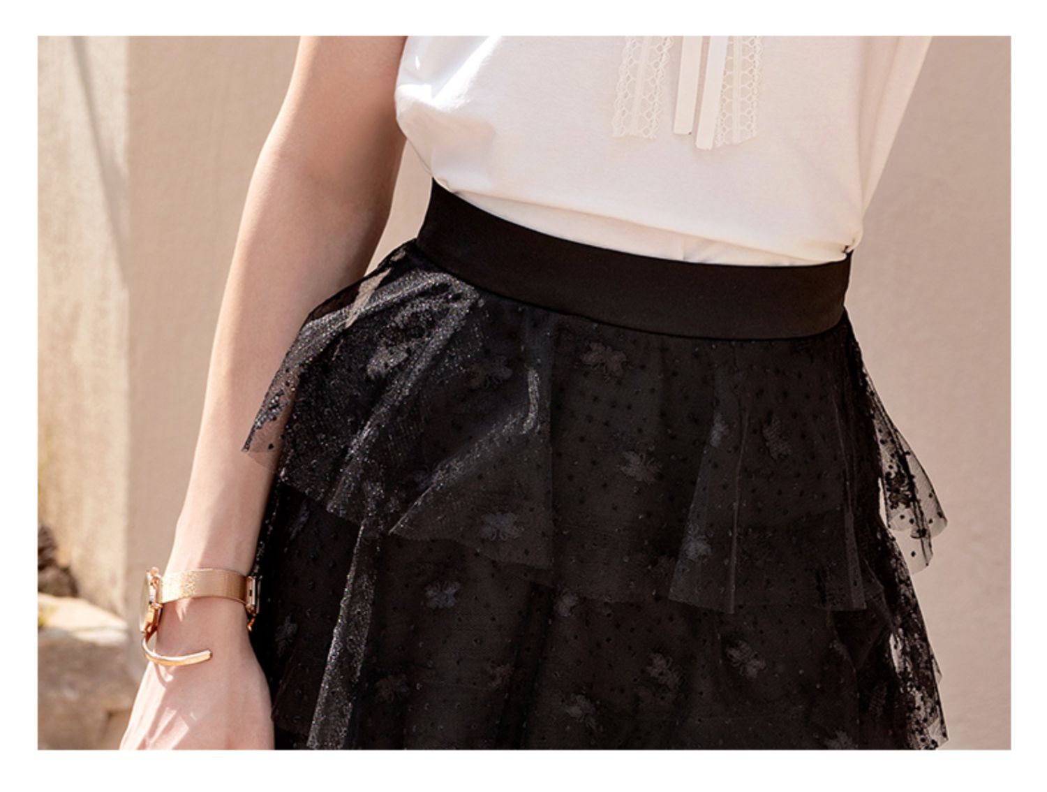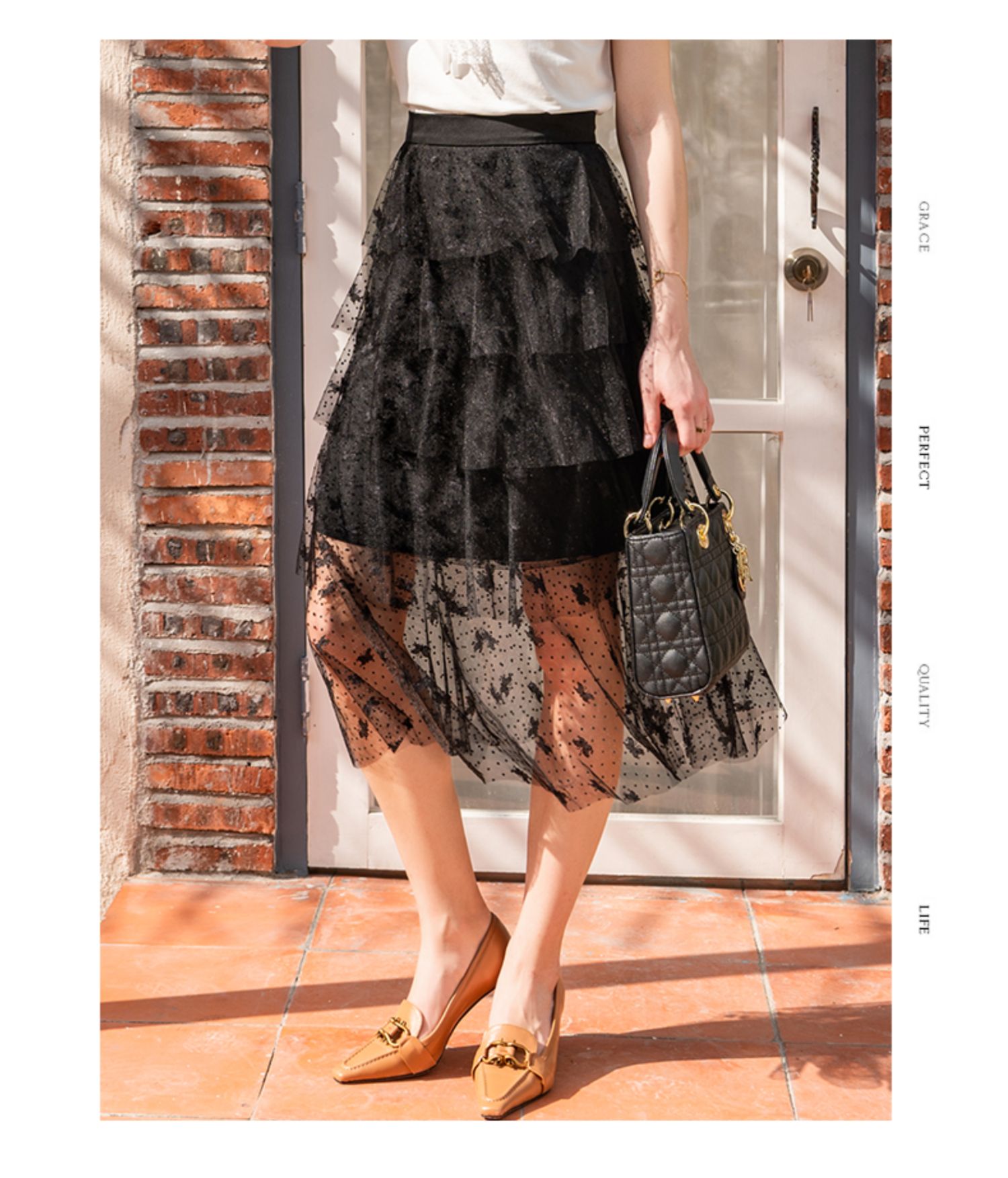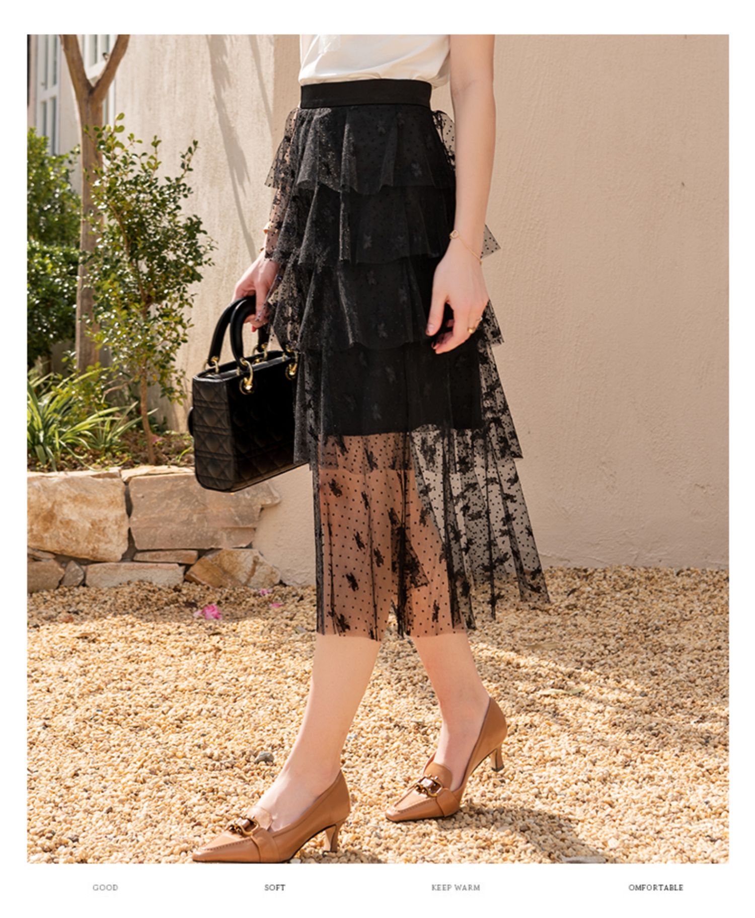 欧芮儿高腰显瘦黑色半身裙女2021新款夏季中长款A字百搭网纱裙ins