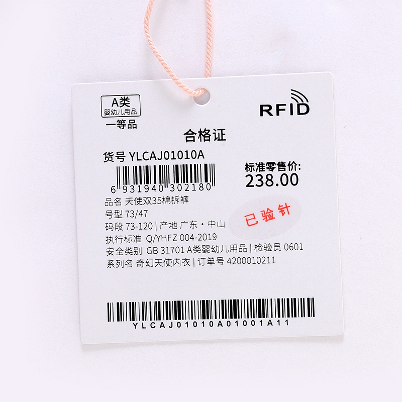 英氏-内衣类(秋)E1天使双35棉拆裤英氏白110CM